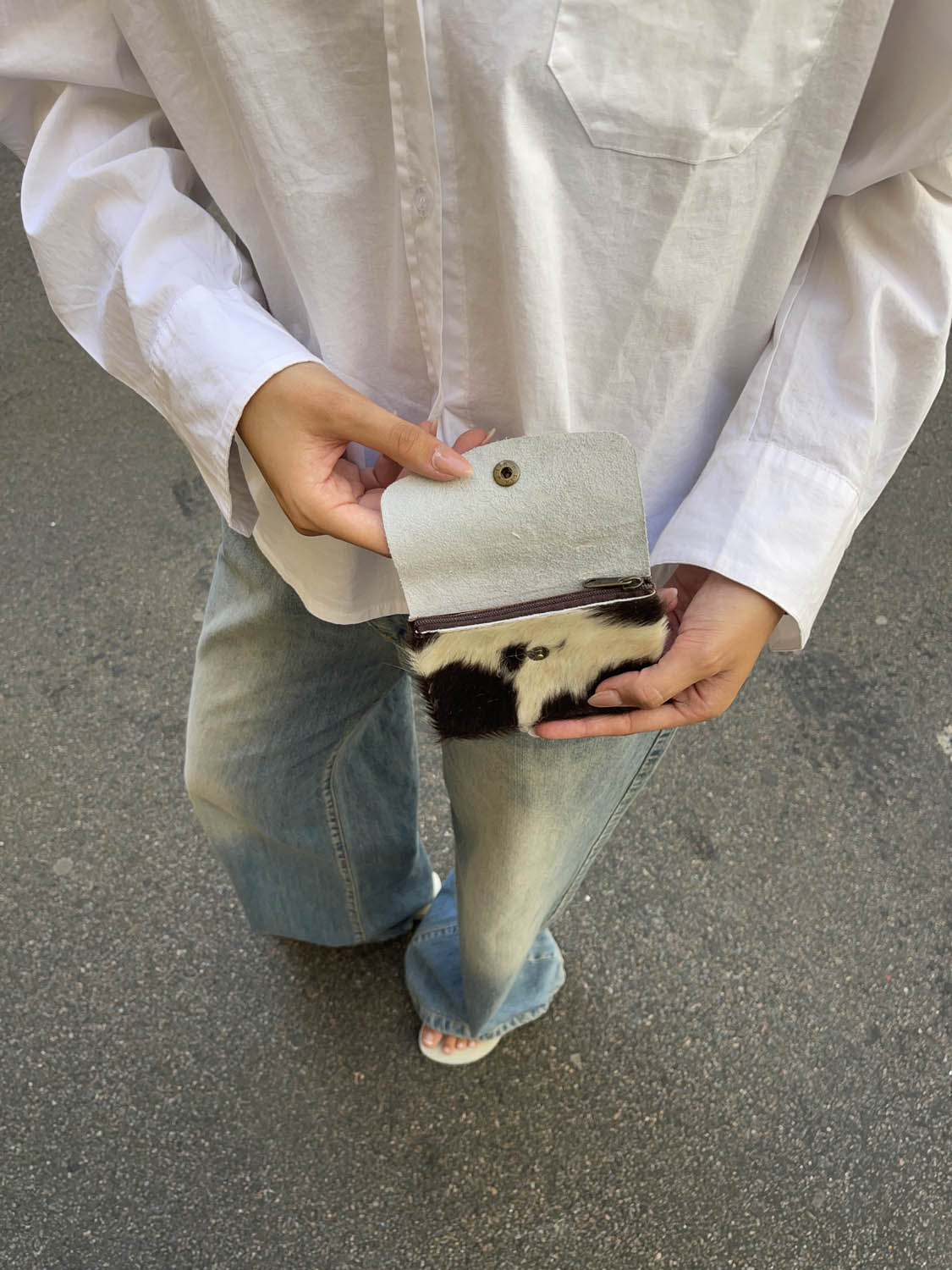 Elva er den lille detalje, der gør en stor forskel. Denne kompakte pung i ægte ko-skind kombinerer praktisk funktion med rå charme. Den hvid-brune farvekombination og det unikke mønster giver et naturligt og personligt udtryk.