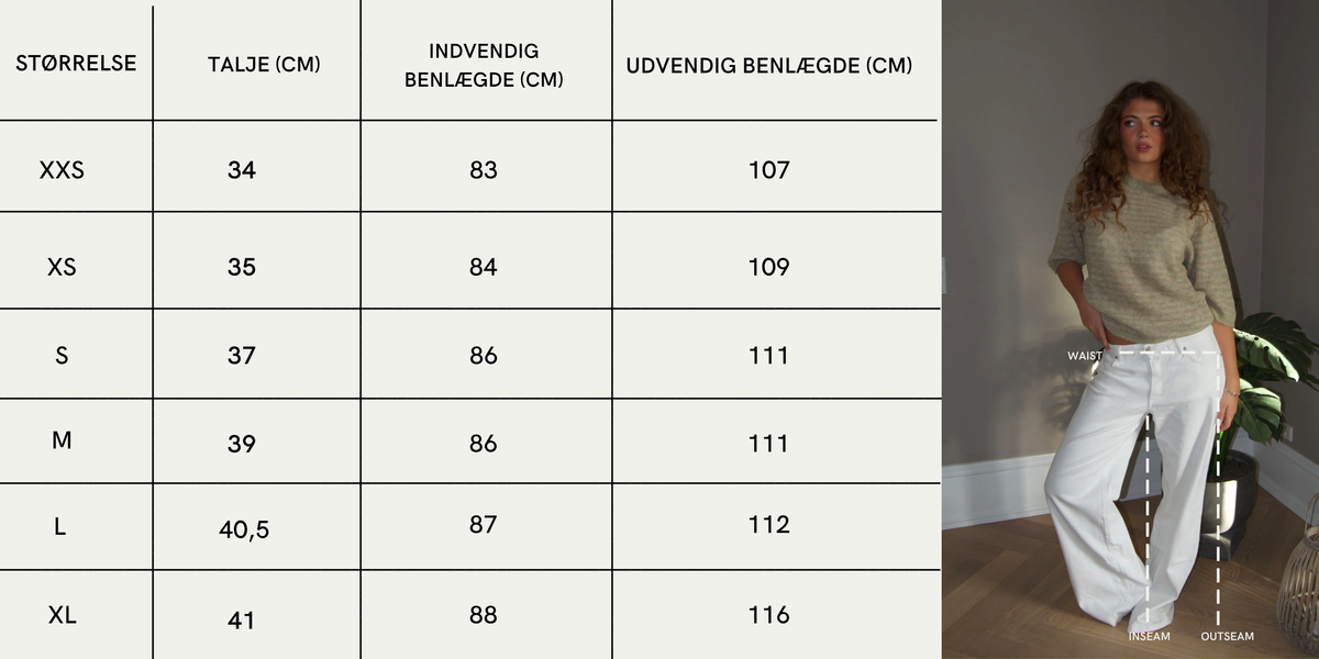 OBS: Størrelsen på denne model kan variere afhængigt af den vask, produktet har gennemgået under produktionen. den hvide kan blandt andet fremstå større.