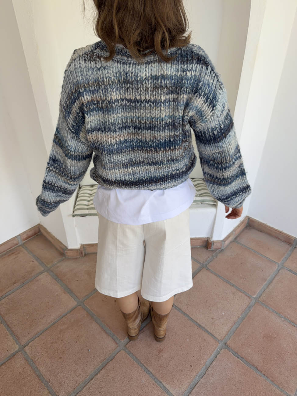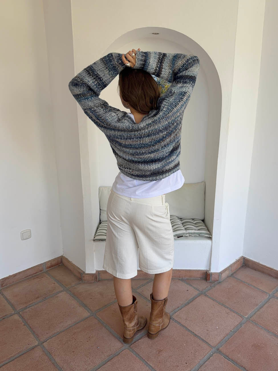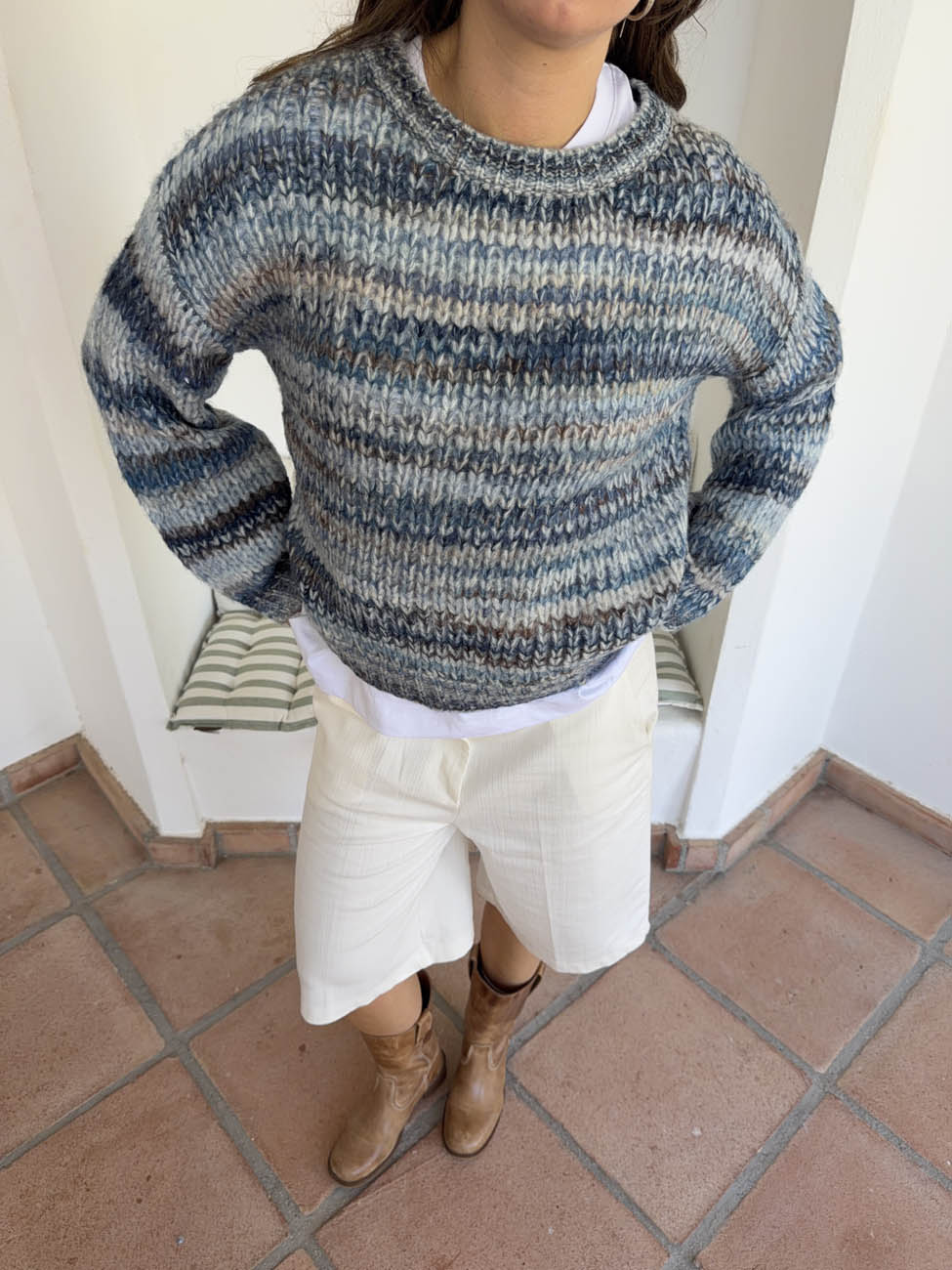 Denne striktrøje med vandrette striber i forskellige farver giver et moderne og farverigt look. Den har et løst og behageligt fit, der sikrer komfort hele dagen. En alsidig trøje, der er nem at style til både hverdag og afslappede anledninger.