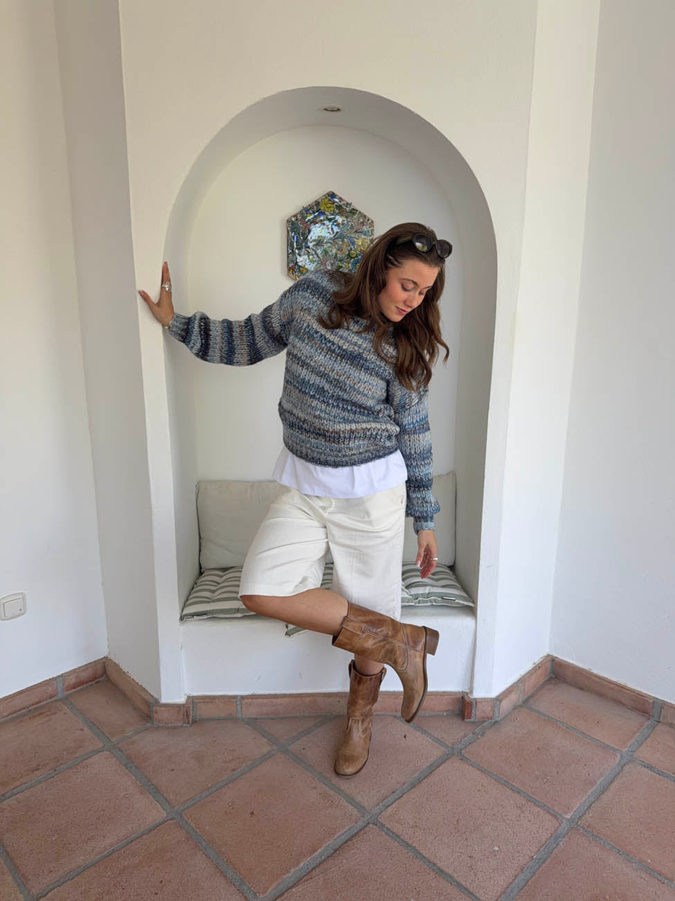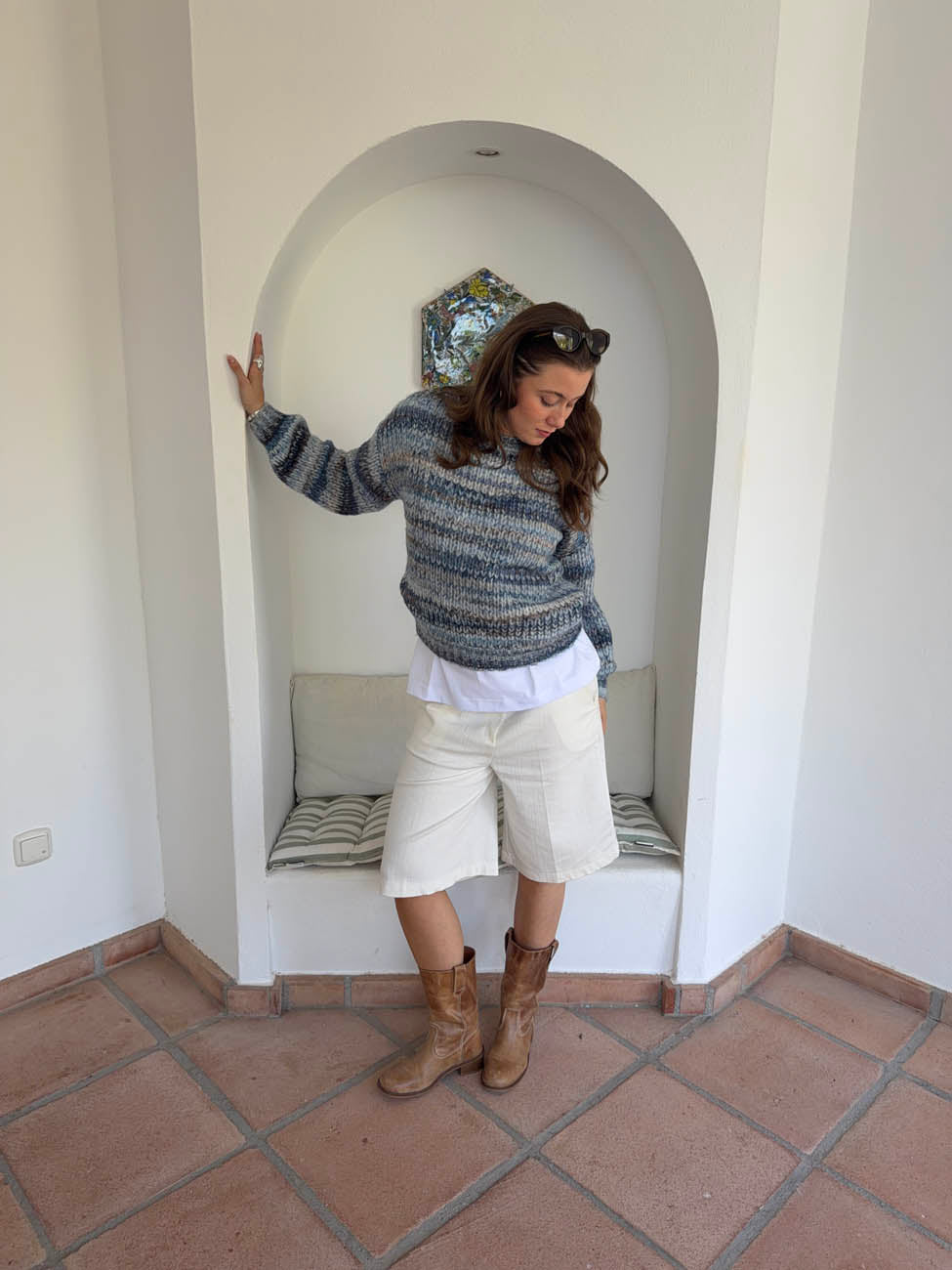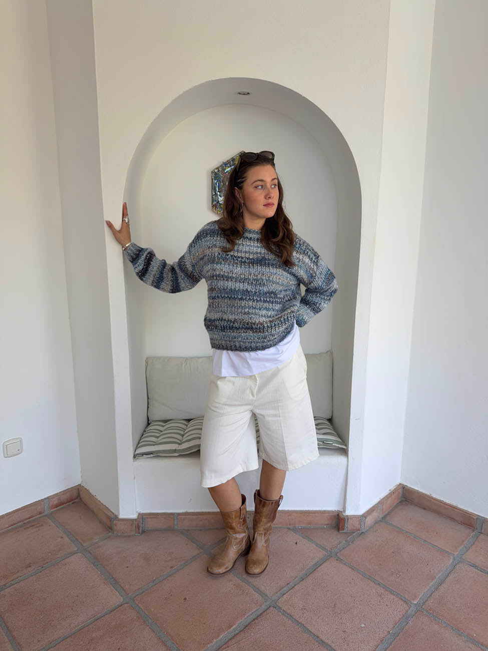 Denne striktrøje med vandrette striber i forskellige farver giver et moderne og farverigt look. Den har et løst og behageligt fit, der sikrer komfort hele dagen. En alsidig trøje, der er nem at style til både hverdag og afslappede anledninger.