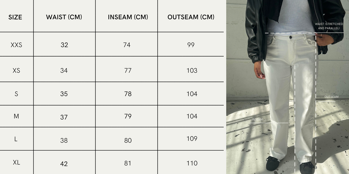 Disse jeans har en lige pasform. De har bæltestropper og en lynlås- og knappelukning. Jeansene kan styles både low- og mid waist, alt efter hvilken størrelse du vælger. De har 2 lommer i siderne og 2 store lommer bagpå.