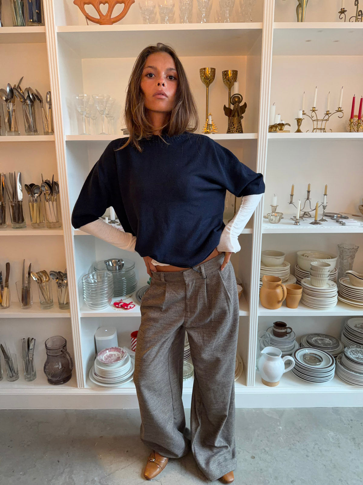 Et par bløde, lette og komfortable bukser i en flot grå melange, der kombinerer det rene look fra klassiske habitbukser med følelsen af loungewear. Finnja har et relaxed, lige ben og et minimalistisk udtryk, som gør dem perfekte til både hverdagsbrug og mere pæne outfits.