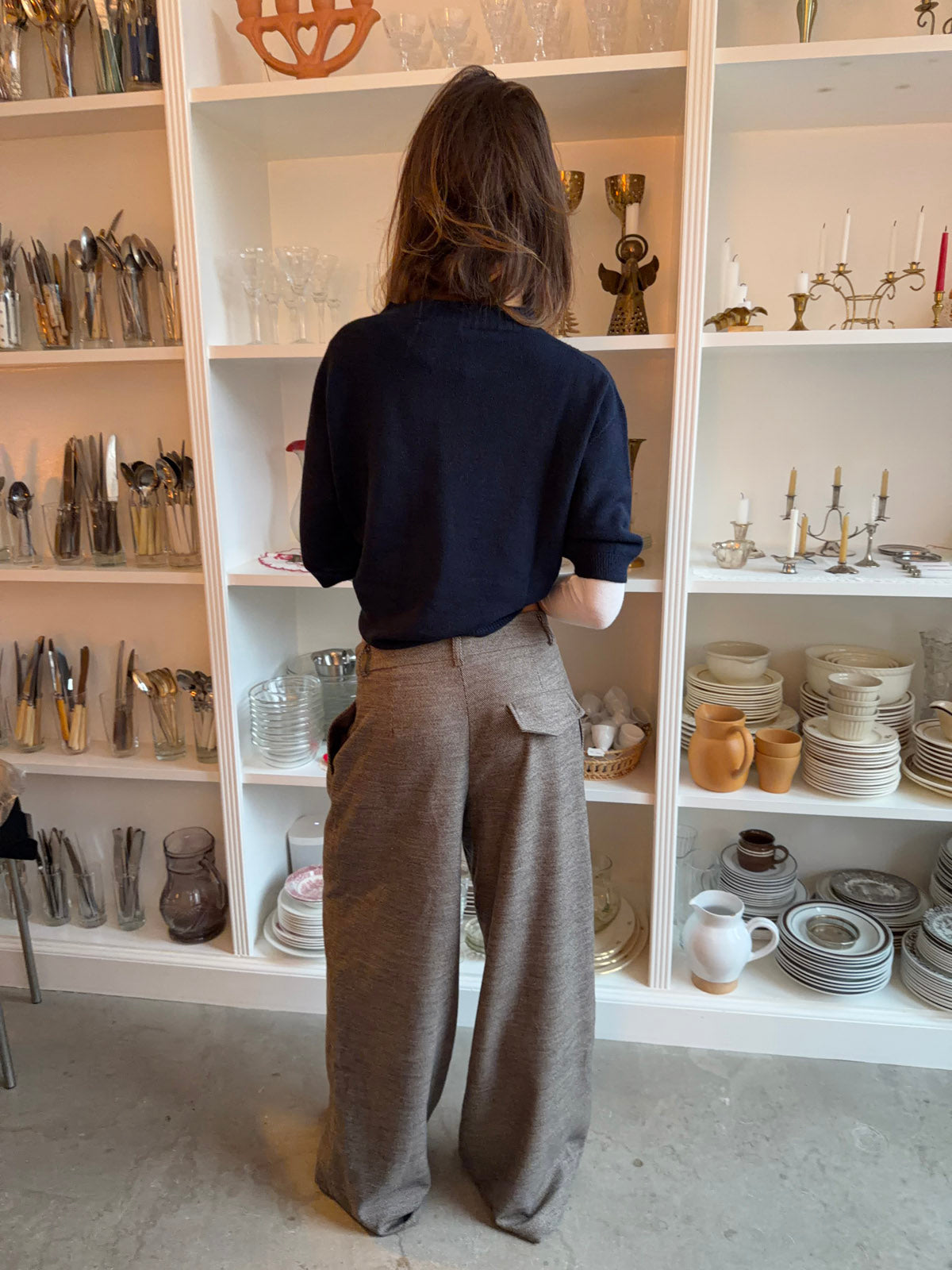 Det let strikkede materiale giver en virkelig behagelig pasform, mens de diskrete læg foran tilføjer lidt ekstra struktur og form. Et par bukser, du kan style op eller ned alt efter dagen.