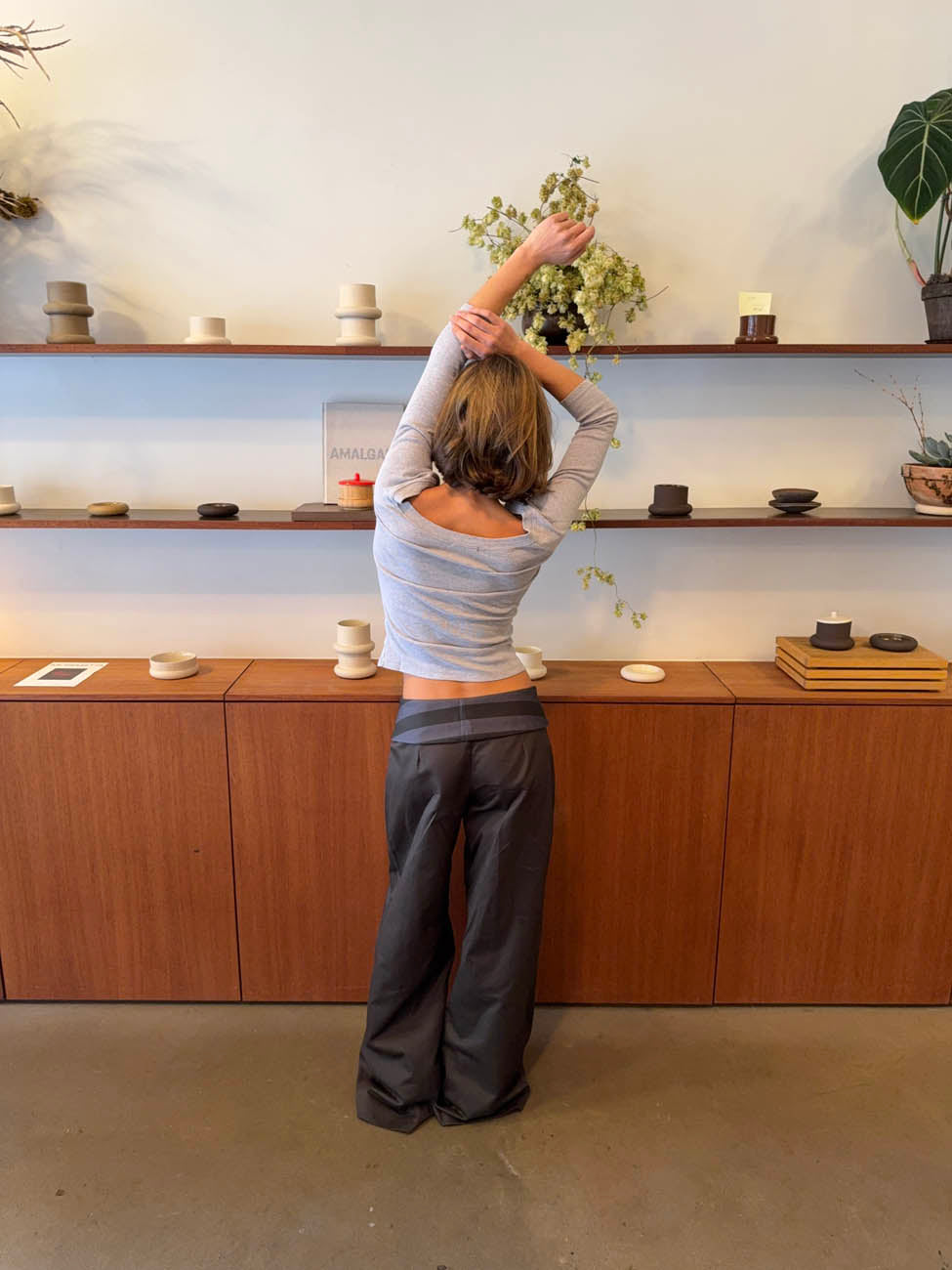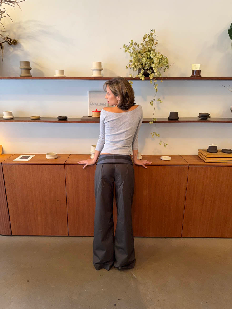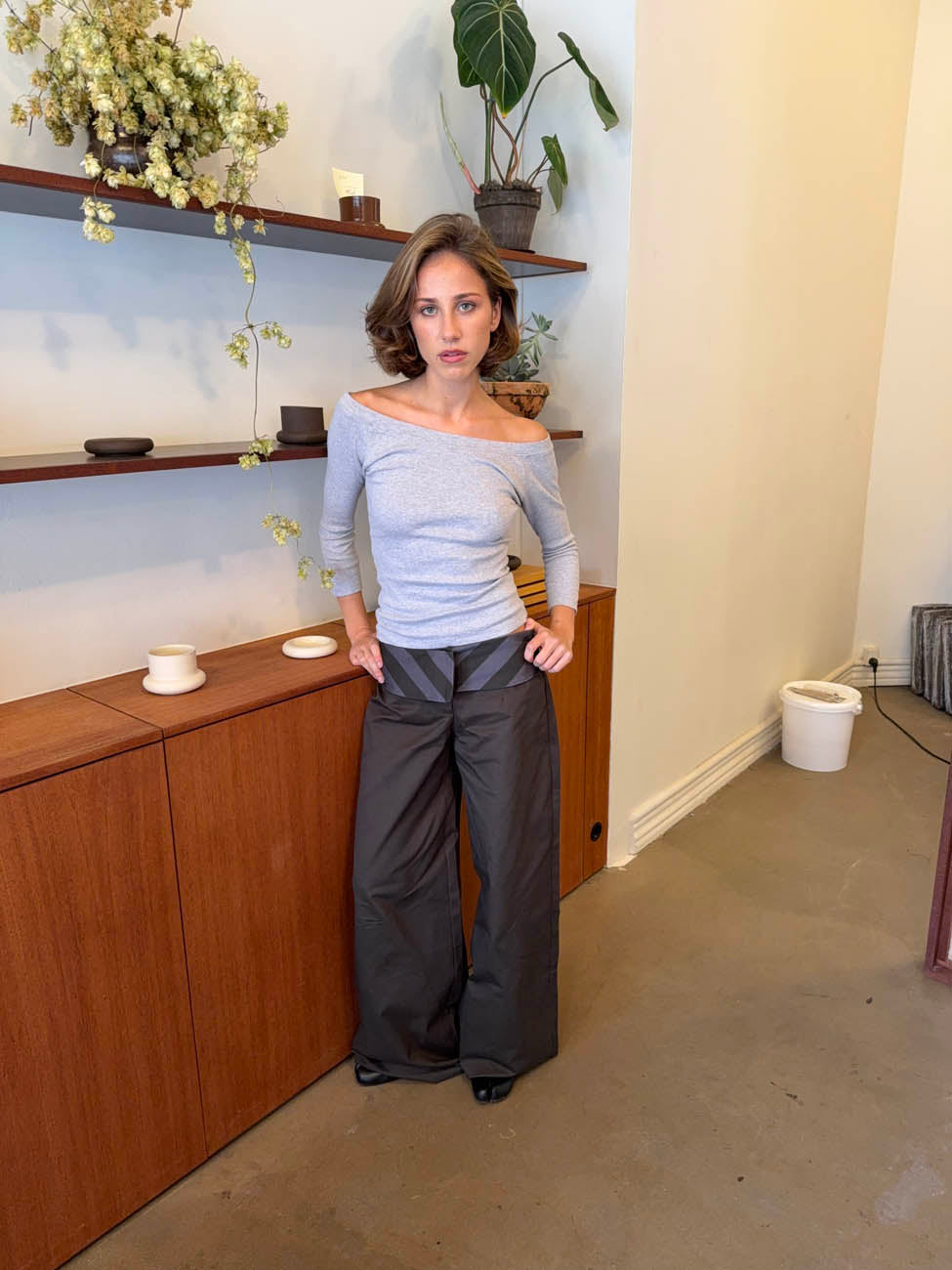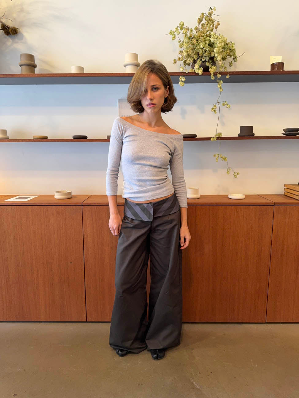 Disse stilfulde bukser kombinerer komfort og et moderne udtryk. Bukserne har lige ben og en baggy, bred silhuet, der gør dem velegnede både til hverdagsbrug og formelle lejligheder. Taljen har en markant, stribet linning i kontrastfarver, som giver et moderne og unikt look. Perfekte at style med en enkel t-shirt eller en skjorte for et stilrent og sofistikeret outfit.