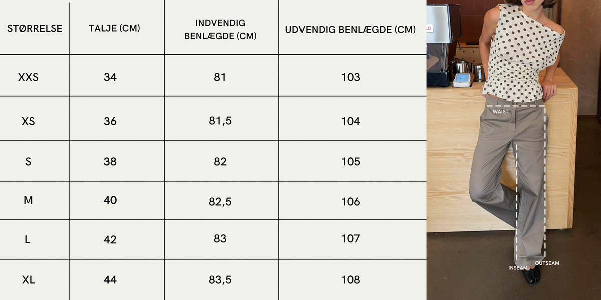 Disse bukser kombinerer et cool og afslappet look med et tidløst design. De har en lige benpasform og en enkelt knap i livet for et minimalistisk udtryk. De praktiske lommer tilføjer både funktionalitet og stil, hvilket gør dem perfekte til både hverdag og streetwear inspirerede outfits.