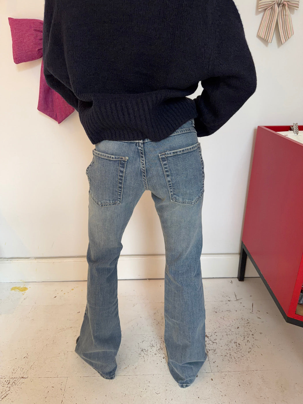 Disse klassiske jeans i en lys, vasket denim forener et tidløst design med et moderne twist. Med et flatterende, slankt fit over hofter og lår, der går ud i et let bootcut, skabes en smuk facon, som både er feminin og afslappet. De traditionelle fem lommer og den autentiske denimstruktur giver et råt, men stadig sofistikeret udtryk.