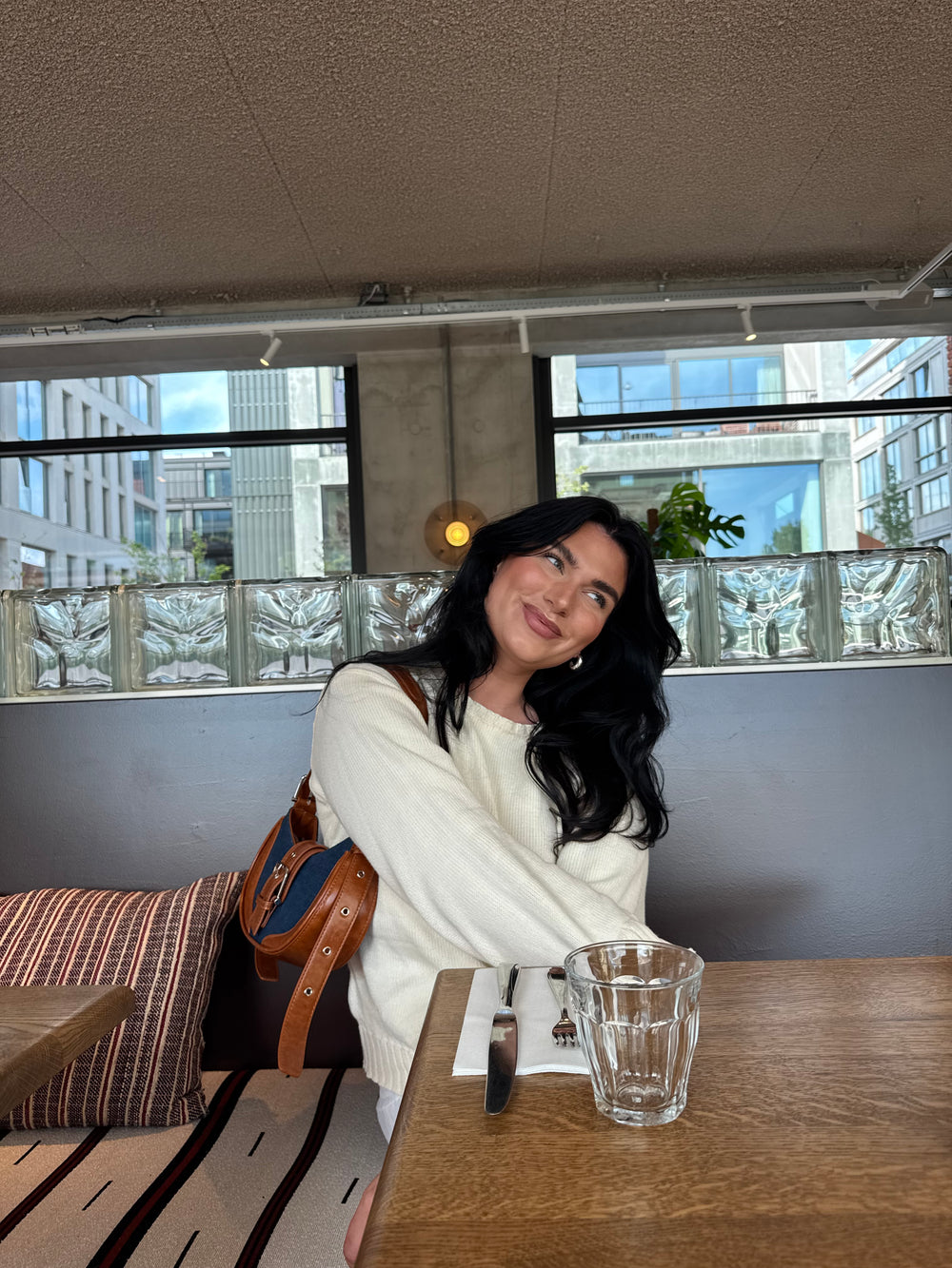 Vores Marseille skuldertaske med den fedeste spændedetalje! Tasken er denim-blå med brune detaljer og har lynlåslukning på toppen. Den har justerbar skulderstrop, sølvfarvede detaljer, lynlåse og metallukning ved spændet.