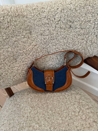 Vores Marseille skuldertaske med den fedeste spændedetalje! Tasken er beige og har lynlåslukning på toppen. Den har justerbar skulderstrop, sølvfarvede detaljer, lynlåse og metallukning ved spændet.