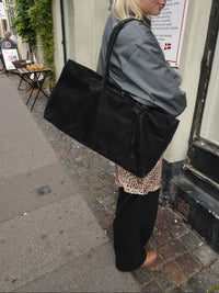 Solero er en elegant og rummelig håndtaske i brun ruskind, der kombinerer et minimalistisk udtryk med en luksuriøs fornemmelse. Den enkle form og de bløde linjer gør den til en taske, du kan bruge både til arbejde, shopping og hverdagsbrug. En tidløs klassiker, der løfter ethvert outfit.