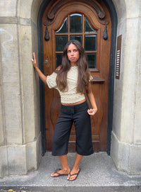 Vores nye capri-bukser er inspirerede af de elskede Calsia suit-bukser – samme elegante pasform og stilrene udtryk, men nu i en kortere version perfekt til sæsonen. Den flatterende capri-længde giver dit outfit et både cool og feminint touch, og gør bukserne ideelle til alt fra hverdagsbrug til festlige sommeranledninger.