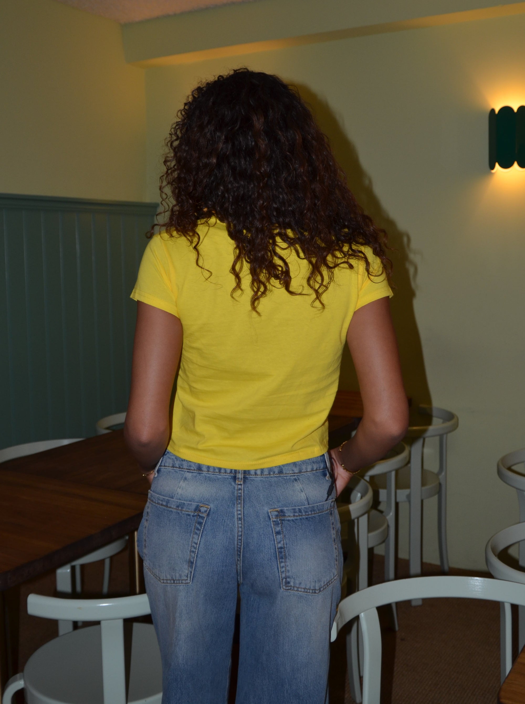 Fit: De er en børnestørrelse, for at skabe den perfekte baby tee-effekt, så vi anbefaler man går 1-2 størrelser op hvis man ønsker et mere oversize look. Derudover kan fittet også variere alt efter din størrelse ved dit bryst. Hvis du er tvivl, kan du tjekke vores størrelsesguide ud.