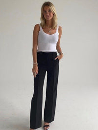 Højtaljet vidde bukser. Dvs det er en buks der sidder stramt foroven og