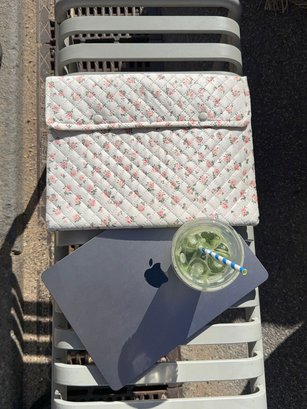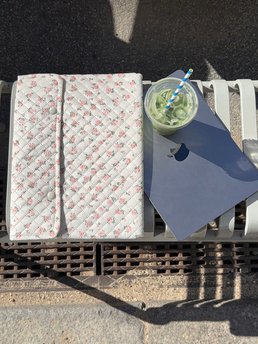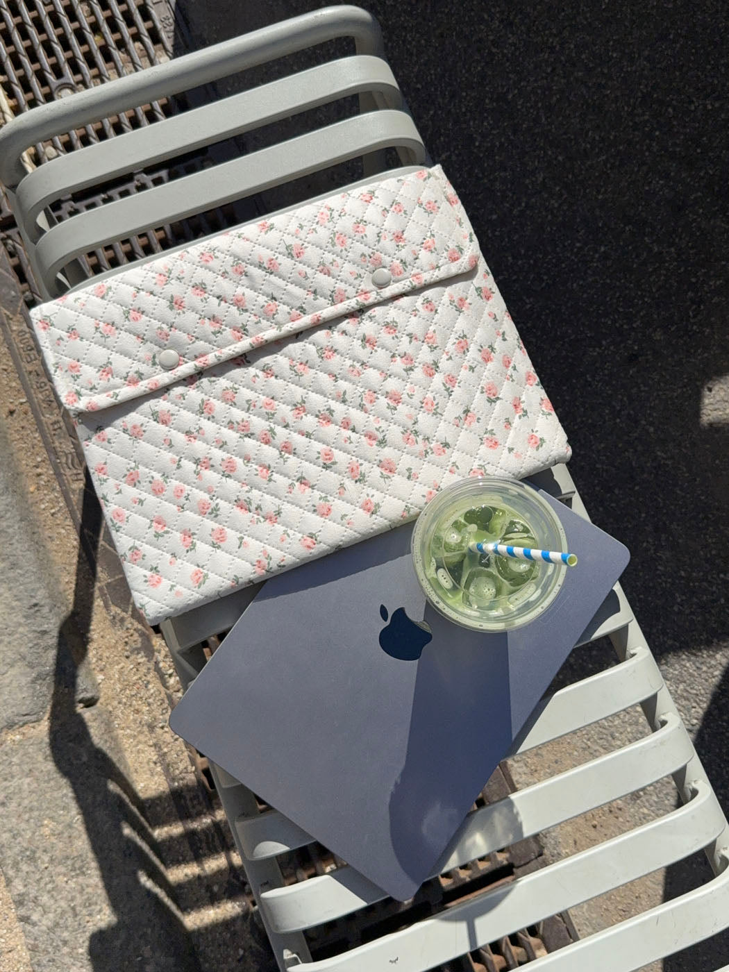 Et romantisk og feminint computersleeve i quiltet design. Den hvide baggrund prydes af fine lyserøde blomster, der giver et blødt og charmerende udtryk. Perfekt til at beskytte din computer med stil og personlighed.