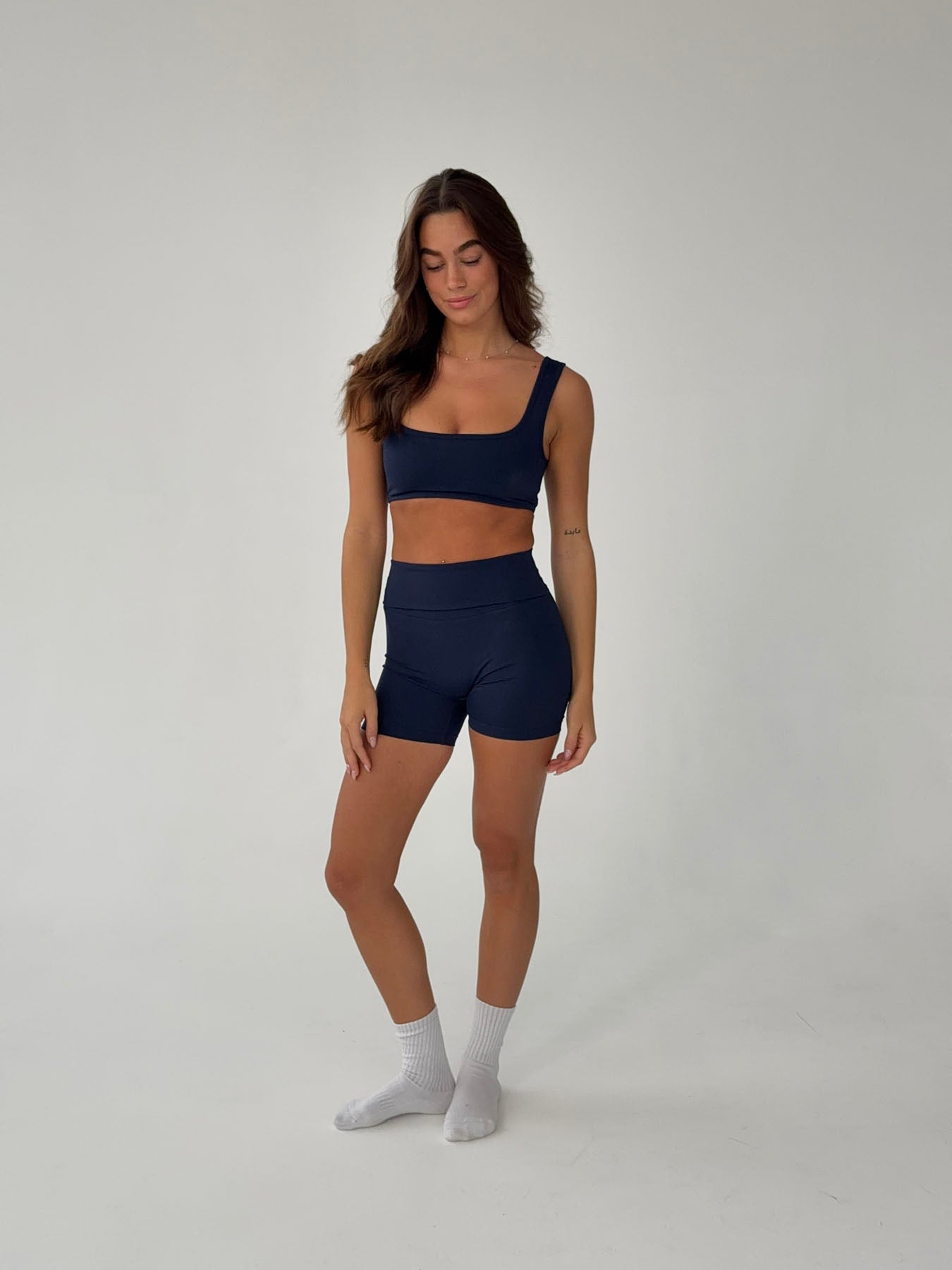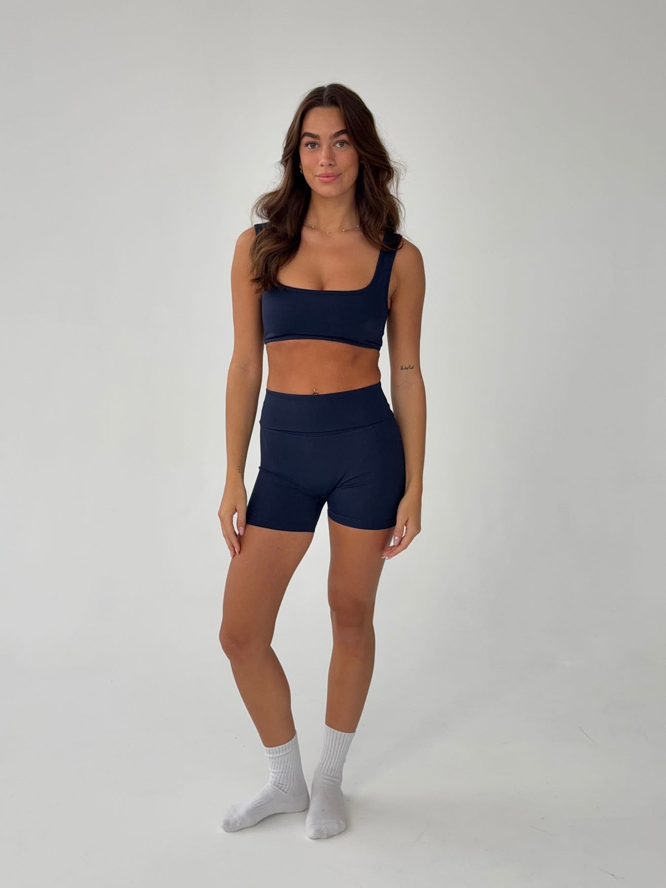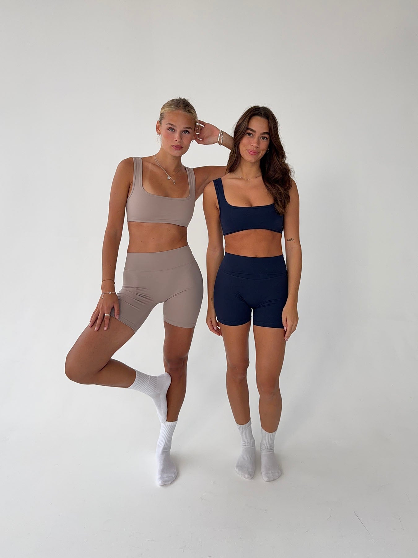 Vores Folded essential shorts er designet til både træning og hverdagsbrug. De er lavet i et let, strækbart materiale, der giver både støtte og komfort under aktivitet. Den højere talje giver ekstra støtte og former kroppen, mens den perfekte længde sikrer, at de bliver på plads under træning. Shortsene er uden front søm, hvilket betyder, at du undgår camel toe.