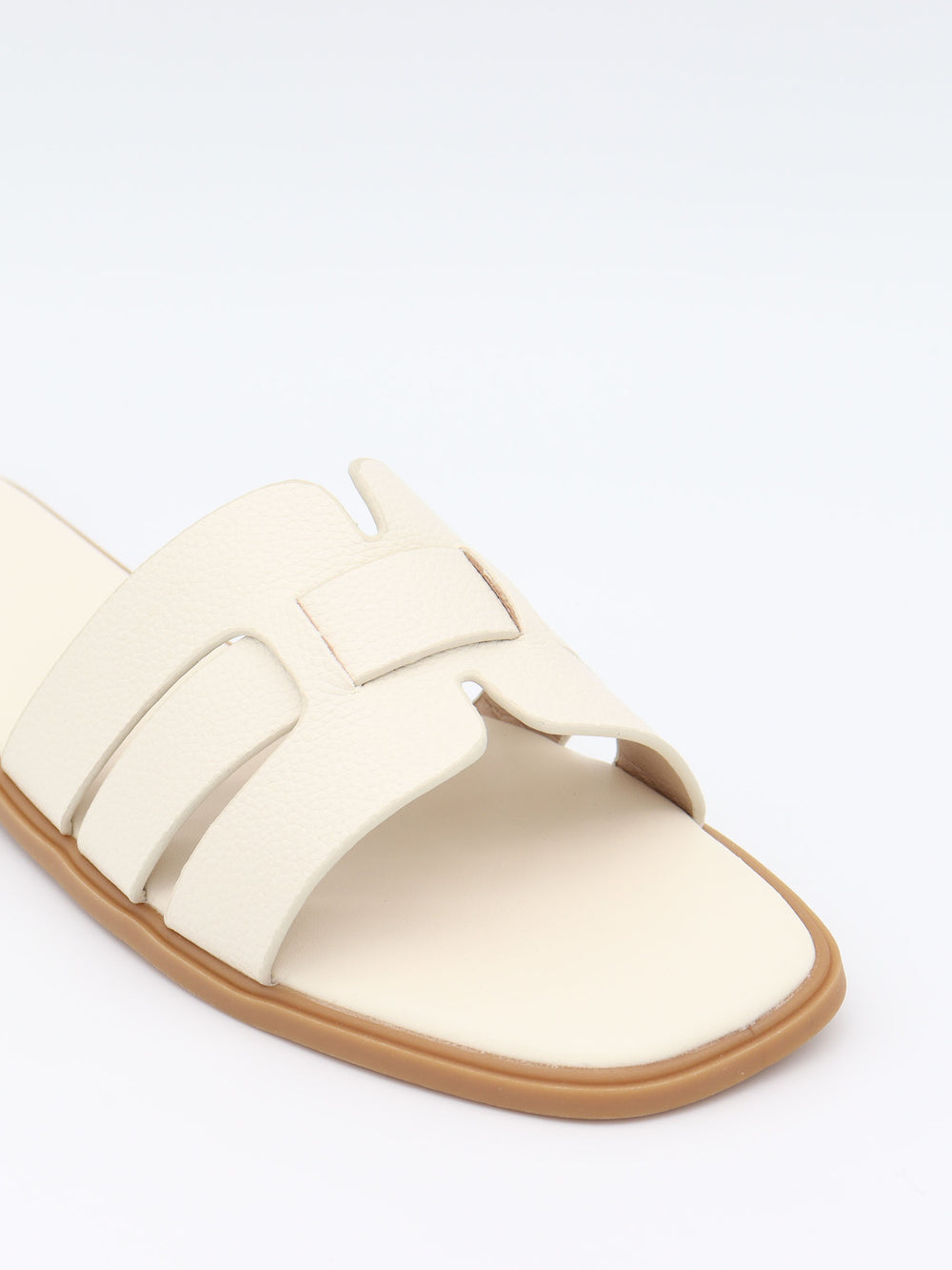 Disse flade sandaler i karamelbrun er et stilrent valg, der forener klassisk design med moderne enkelhed. Den brede, udskårne rem skaber et elegant og luftigt udtryk, mens den firkantede snude og flade sål giver et nutidigt og komfortabelt look.