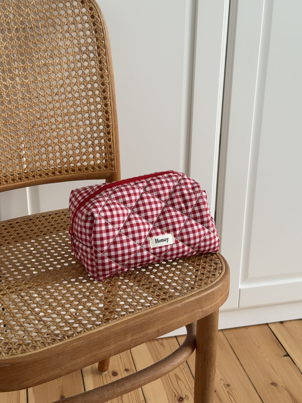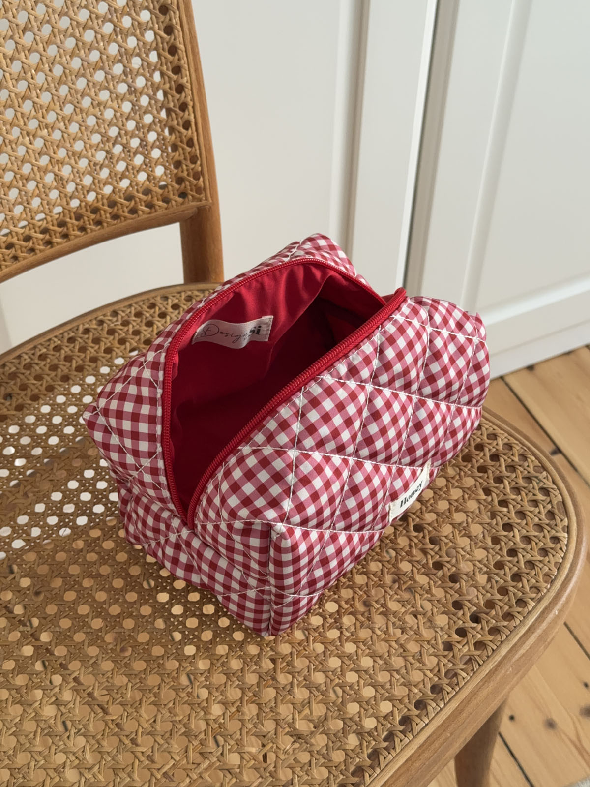 Honey lille toilettaske med tern - Hvid/rød