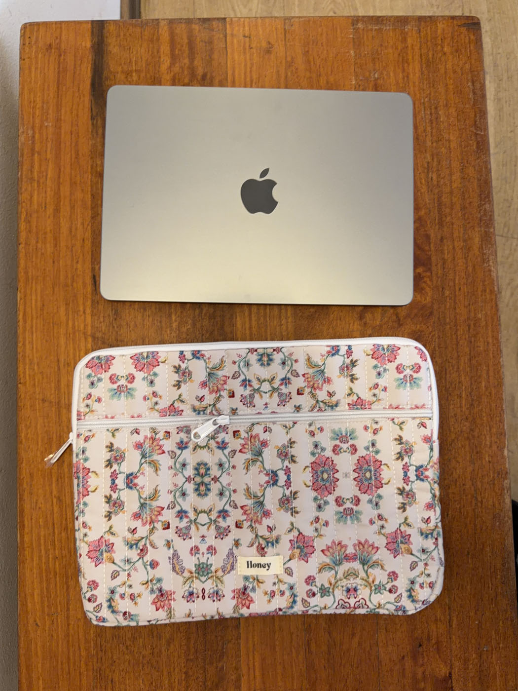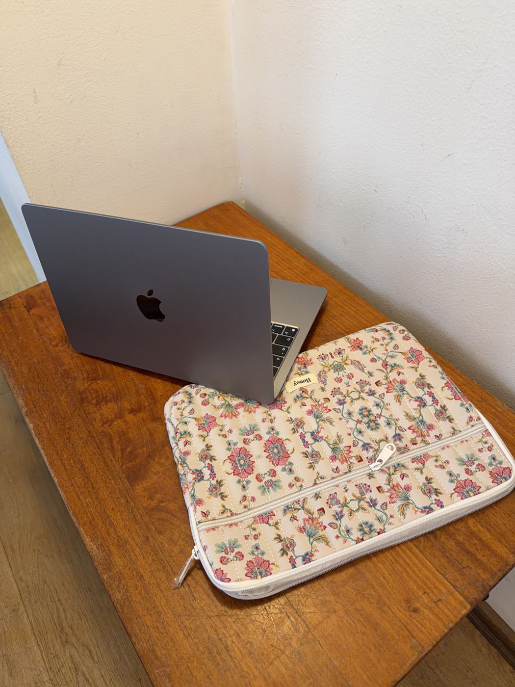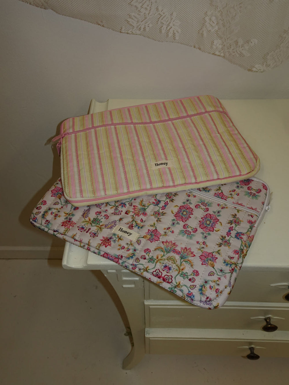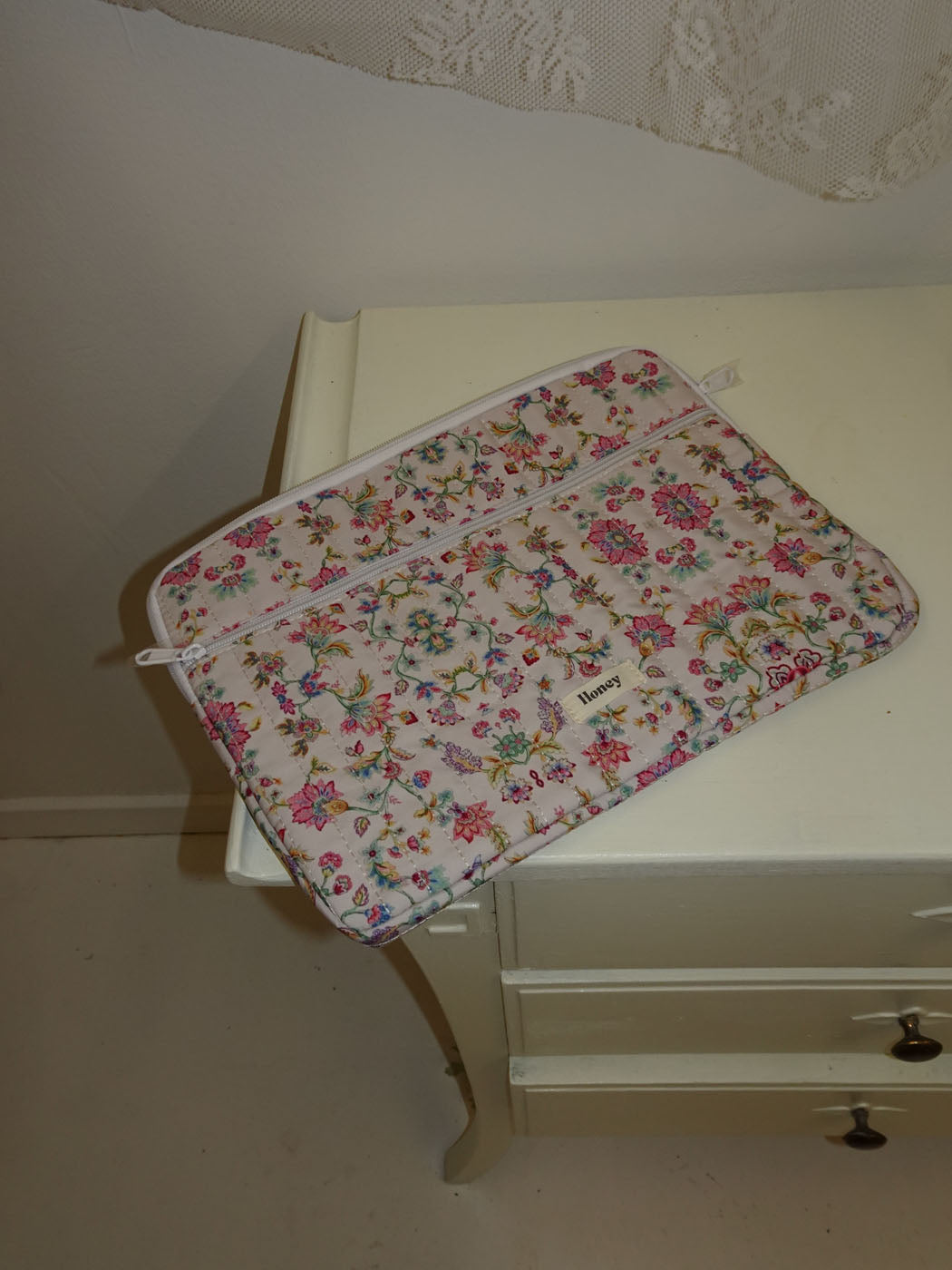 Honey computer sleeve - Hvid med lyserøde/blå blomster