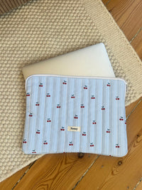 Honey computer sleeve - Blå/Hvide striber med kirsebær