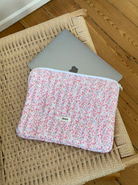 Honey computer sleeve - Hvid med lyserøde/blå blomster