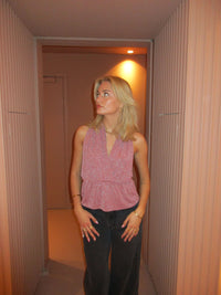 Vores Julle top er i et flot og glitrende materiale. Toppen har et halter fit og går ind ved livet, hvilket gør den er flatterende og unik. Den er perfekt til de festlige begivenheder.