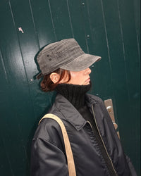 Myr kasketten er en afslappet cap i vasket grå-bomuld med et enkelt og tidløst design. Den militærinspirerede form giver et råt, men stilrent udtryk, som passer perfekt til både hverdagsbrug og weekendens udflugter.