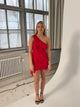 Smuk one shoulder kjole med skrå frynser langs hele kjolen, hvilket gør den unik. Kjolen er lårkort og sidder super flot på kroppen.