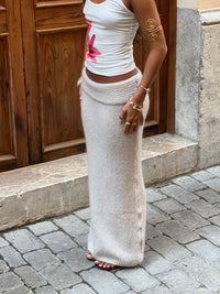 Maxi nederdel i et flot og stikket materiale. Nederdelen har en lav talje og et fold i kanten. Styles perfekt sammen med din bikini eller blot til hverdagsbrug.