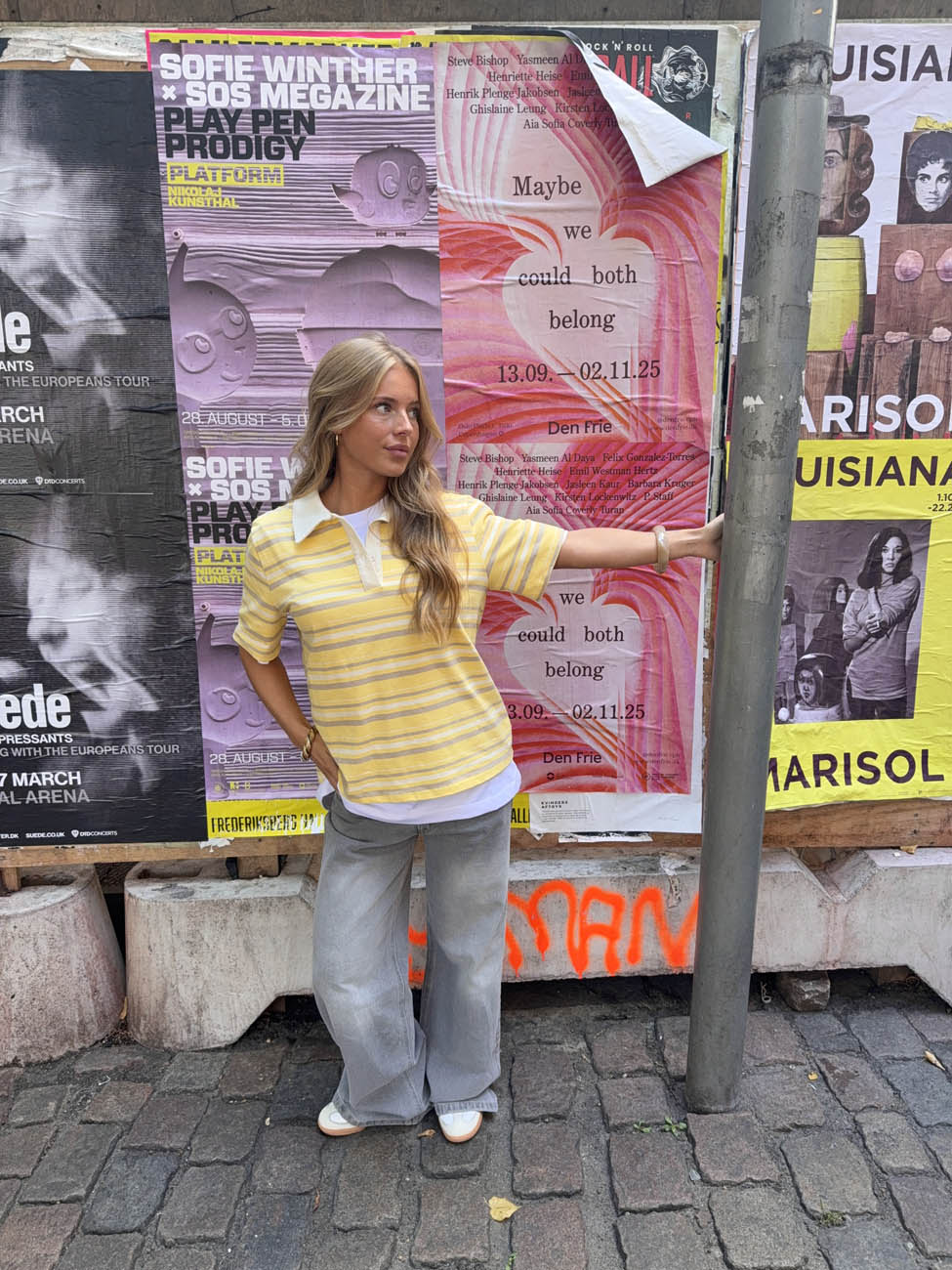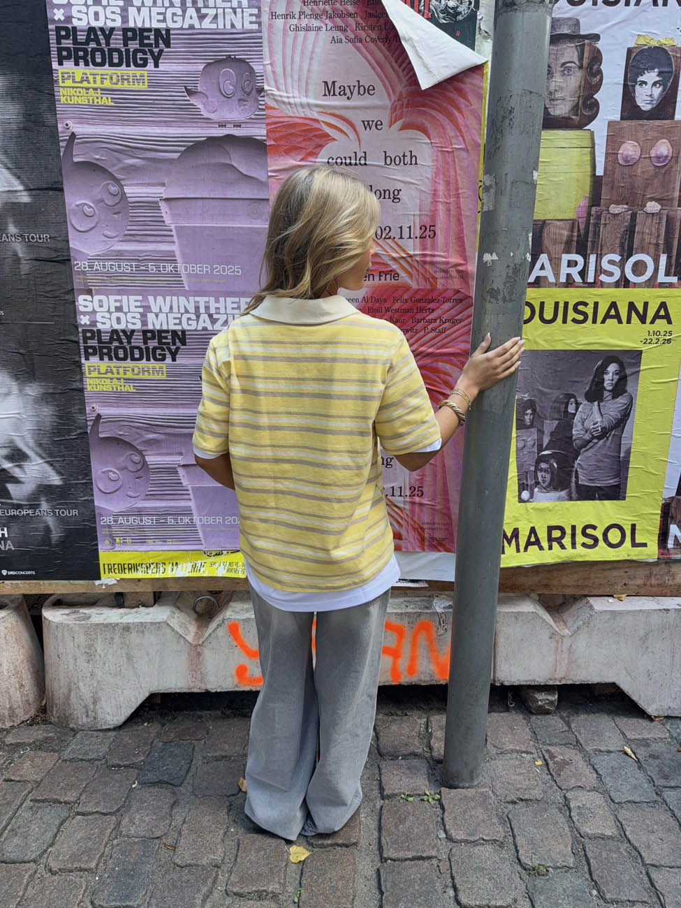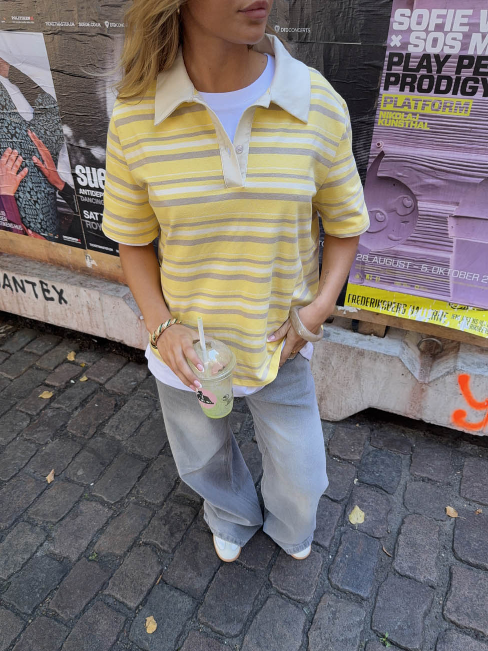Vores stribede polo er din nye go to. De dybe toner kombineret med en skarp hvid krave skaber et sofistikeret, men afslappet udtryk. Den kan styles med både jeans, tailored bukser eller en enkel nederdel – perfekt til både hverdagsbrug og mere formelle anledninger.