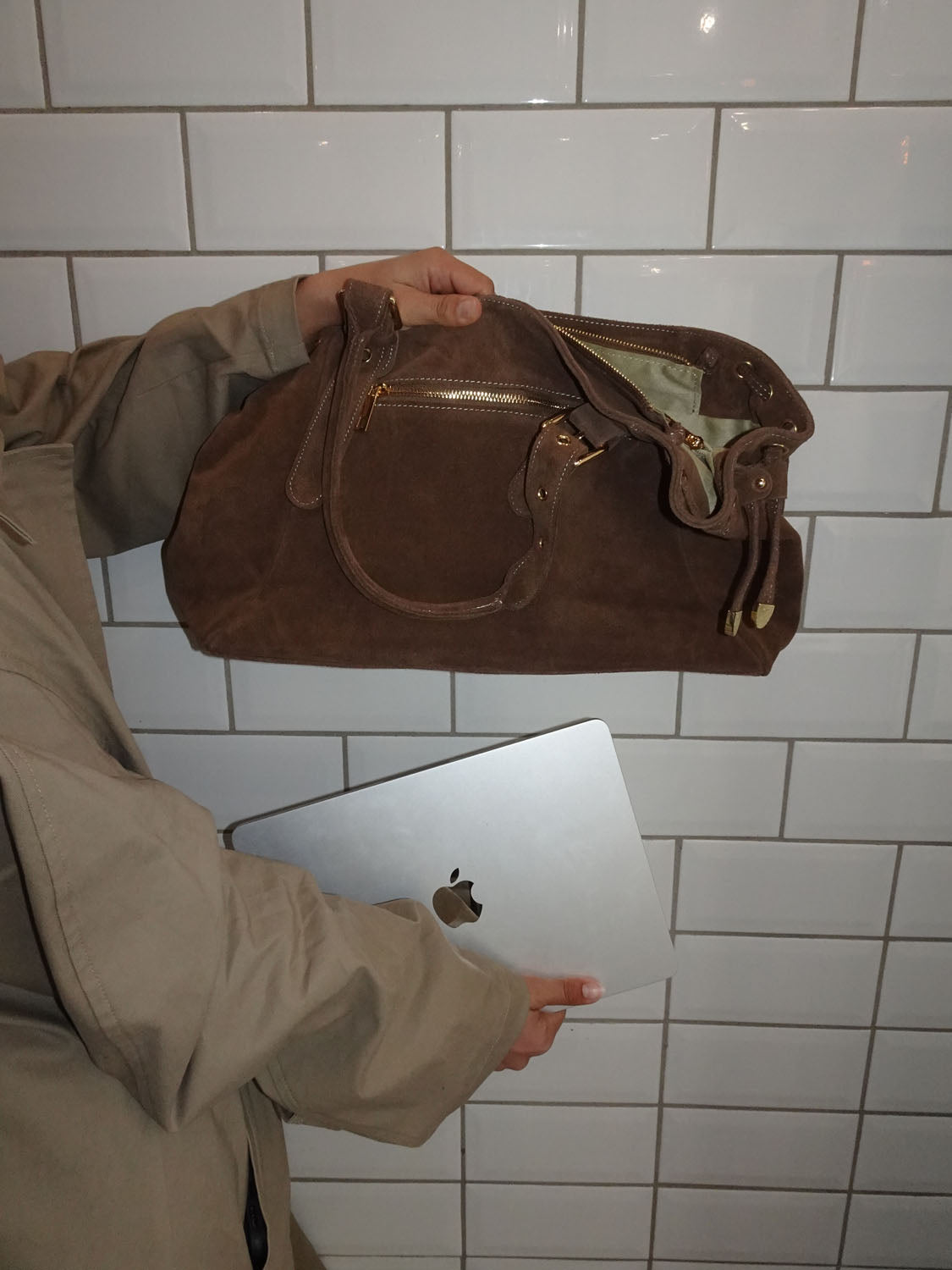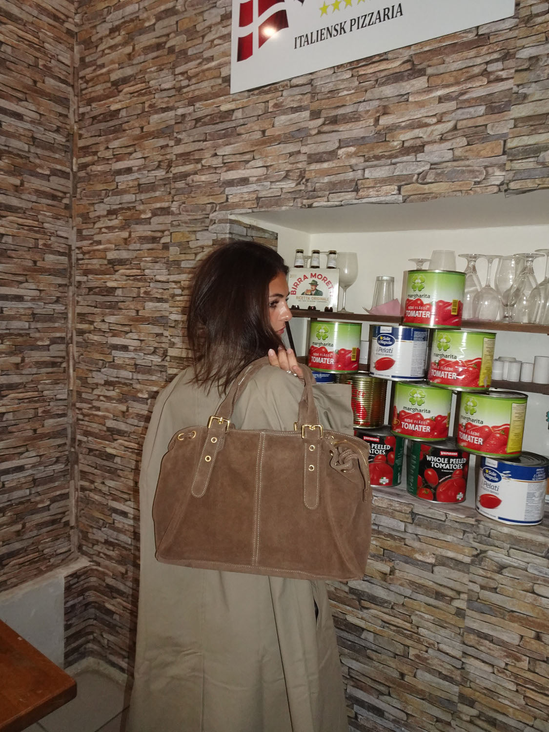 Denne smukke taske i blødt ruskind forener kvalitet og klassisk design. De gyldne lynlåse og metaldele tilføjer et eksklusivt touch, mens de solide hanke og rummelige rum gør tasken praktisk til daglig brug.