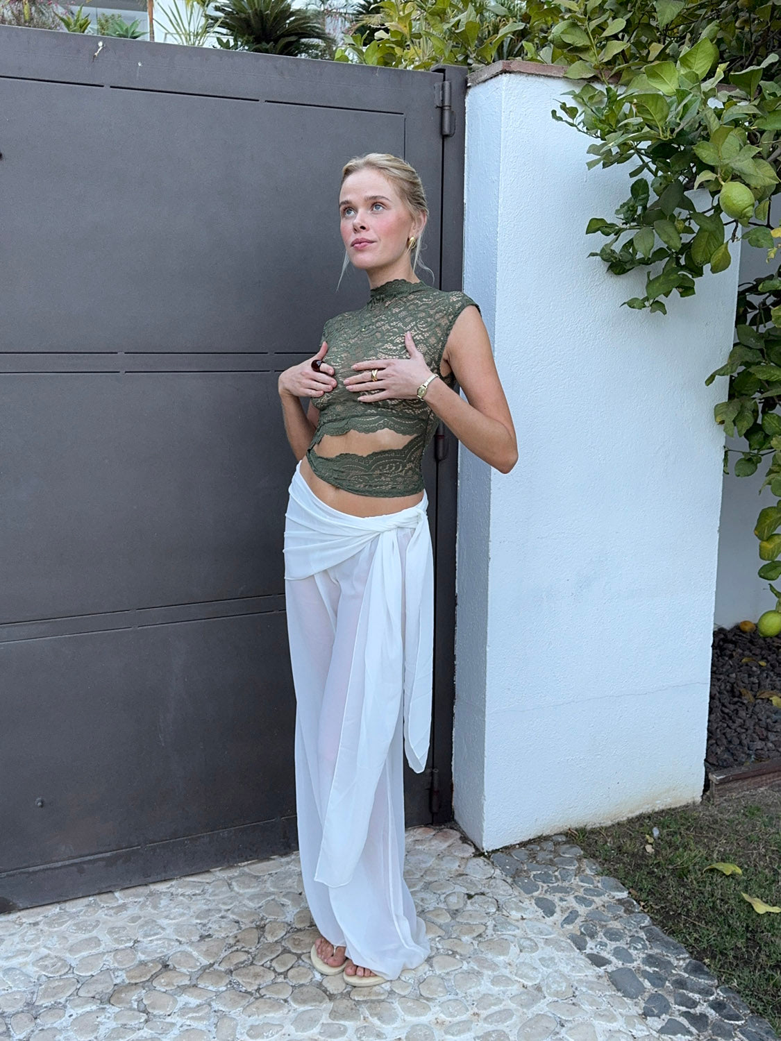 Marisole top i blonde - Kaki