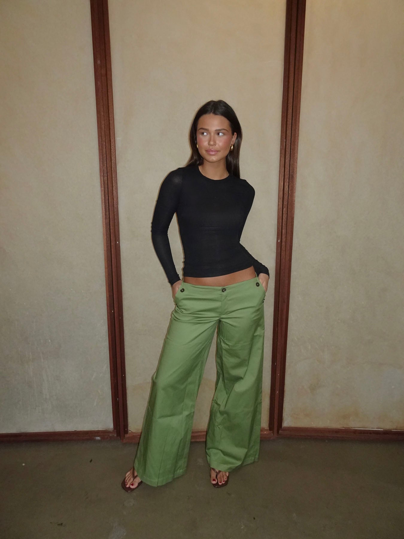 De stilrene Maxim bukser i taupe er et musthave til enhver garderobe. Med deres lige pasform og dekorative knapper i taljen får du et look, der balancerer mellem klassisk og moderne.