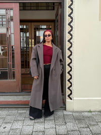 I vores "copenhagen" drop finder du denne sorte frakke med skulderpuder, som giver dette oversized look. Den har en lang pasform og har en udskæring med revers. Denne jakke er nøglen til det perfekte "copenhagen girl" look!