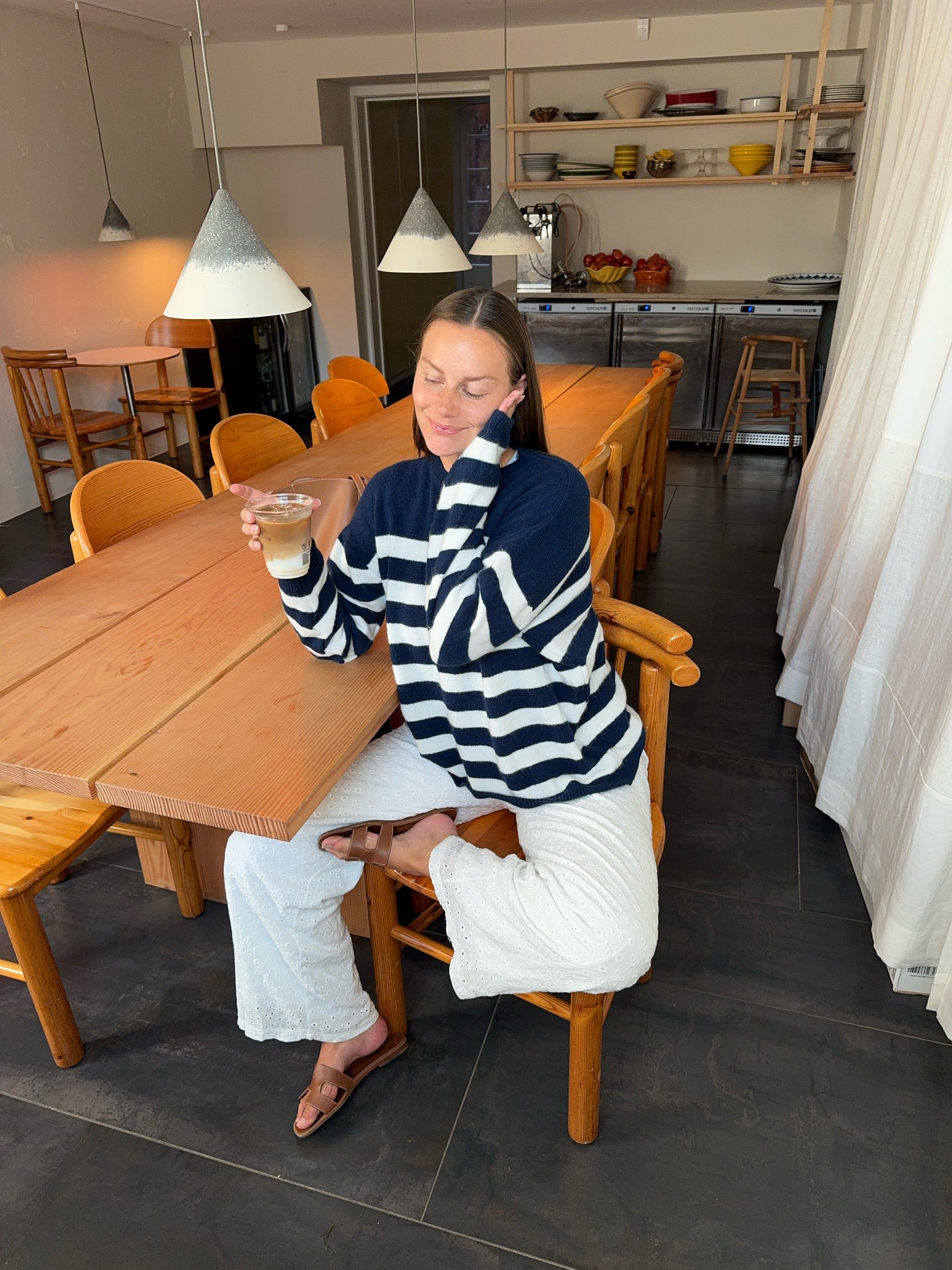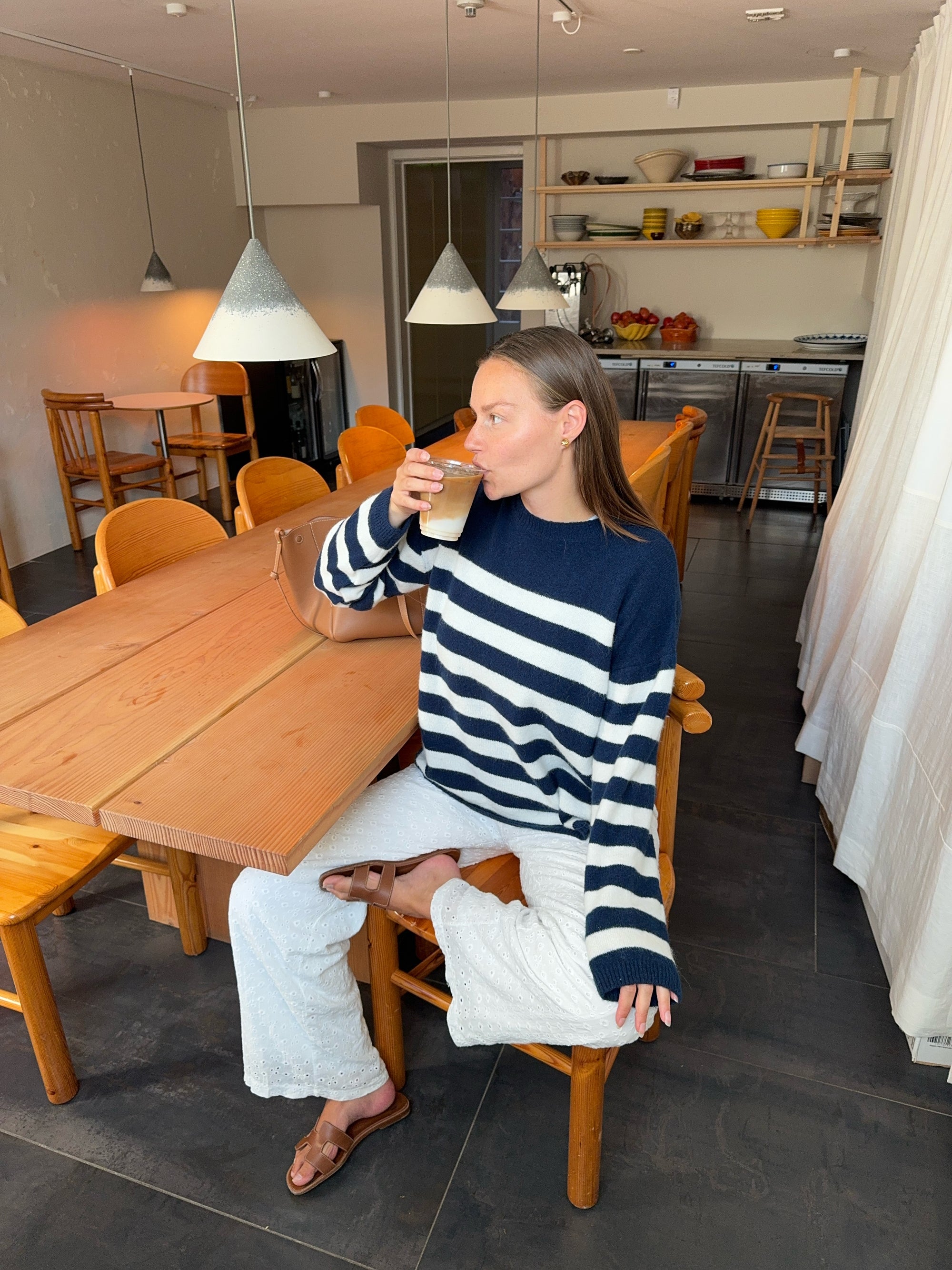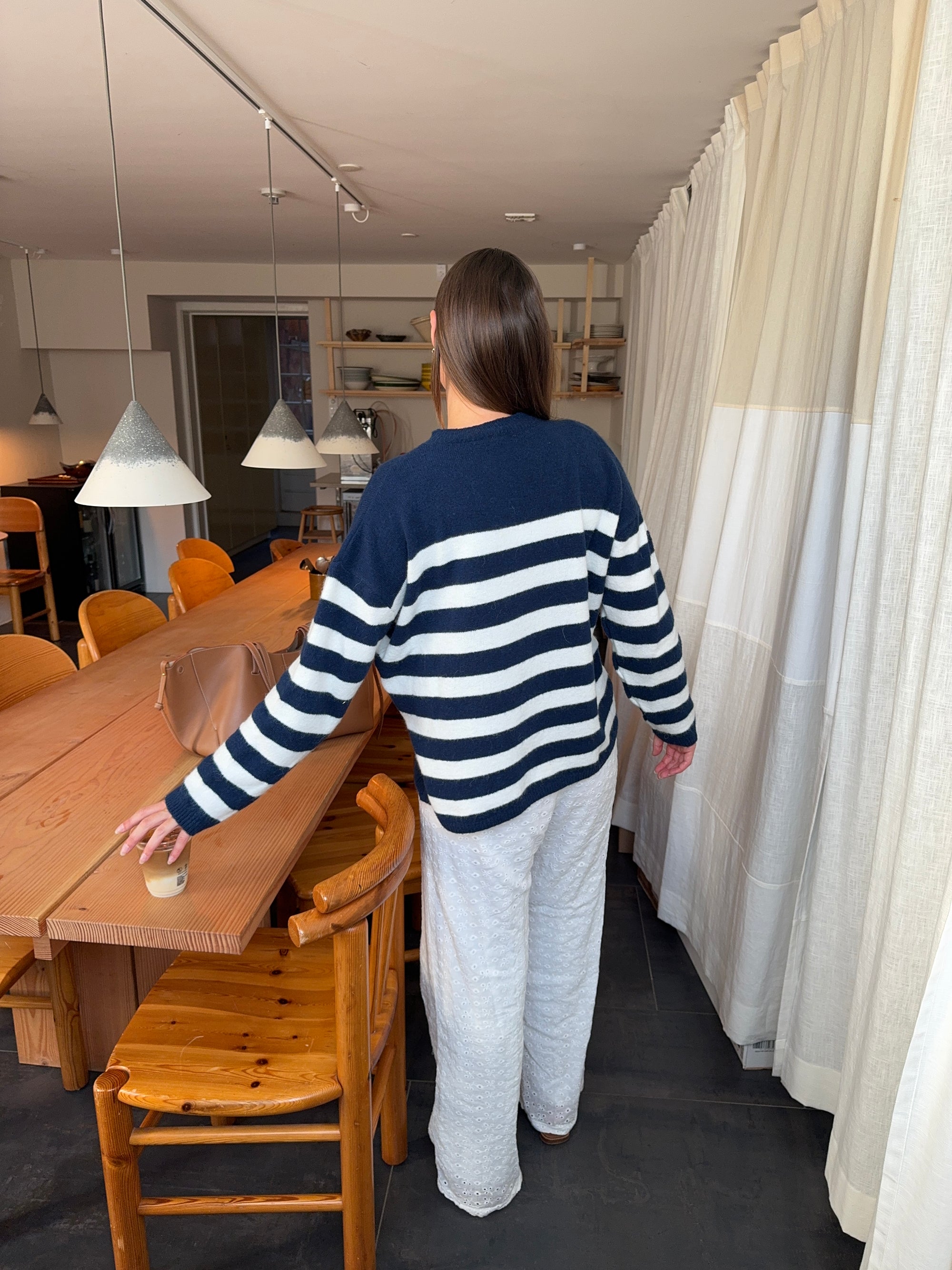 Mathilde Ravn stribet striktrøje - navy/hvid