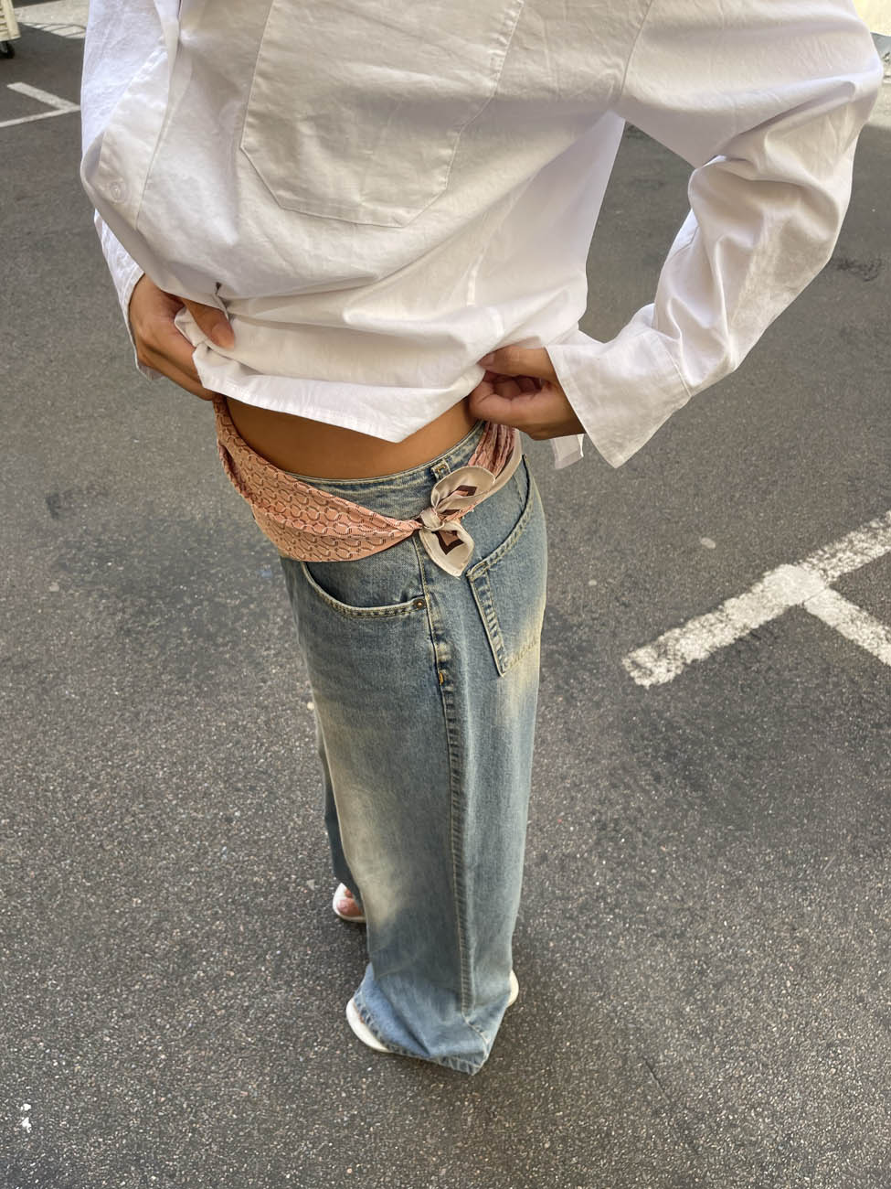 Brug det i bæltekanten for et elegant og legende touch, bind det i håret som en chic detalje, eller fastgør det på tasken for at tilføje lidt ekstra farve og stil. Tørklædet er det perfekte accessory, når du ønsker at pifte hverdagsgarderoben op med noget enkelt, men effektfuldt.