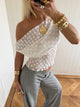 Den let markerede talje skaber en flatterende silhuet, og den gennemsigtige struktur gør toppen ideel til både festlige anledninger og stilfulde hverdagslooks – perfekt stylet med højtaljede bukser eller en nederdel.