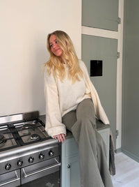 Denne striktrøje er lavet i det blødeste materiale, som holder dig varm hele vinteren. Trøjen har lange ærmer og et løst udseende, som giver en oversized pasform.