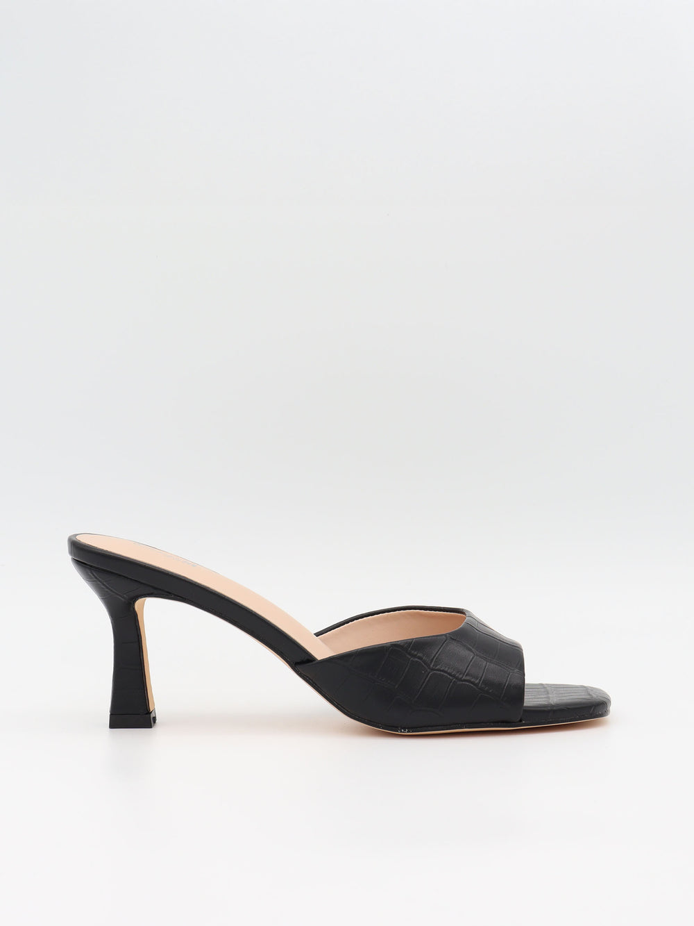 Disse elegante sorte mules kombinerer minimalisme med luksuriøs tekstur. Den brede front rem i sort, præget kunstlæder med subtil kroko-struktur giver et eksklusivt udtryk, mens den slanke hæl skaber et feminint og sofistikeret look. Den åbne mule-model gør dem nemme at style til både jeans, kjoler og aftensæt, og den stabile hælhøjde gør dem komfortable at gå i – selv i længere tid. Et tidløst valg, der løfter enhver outfit med et moderne og stilrent touch.