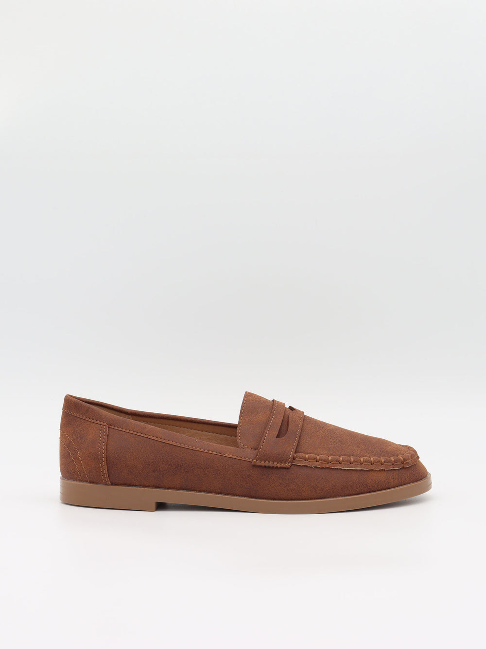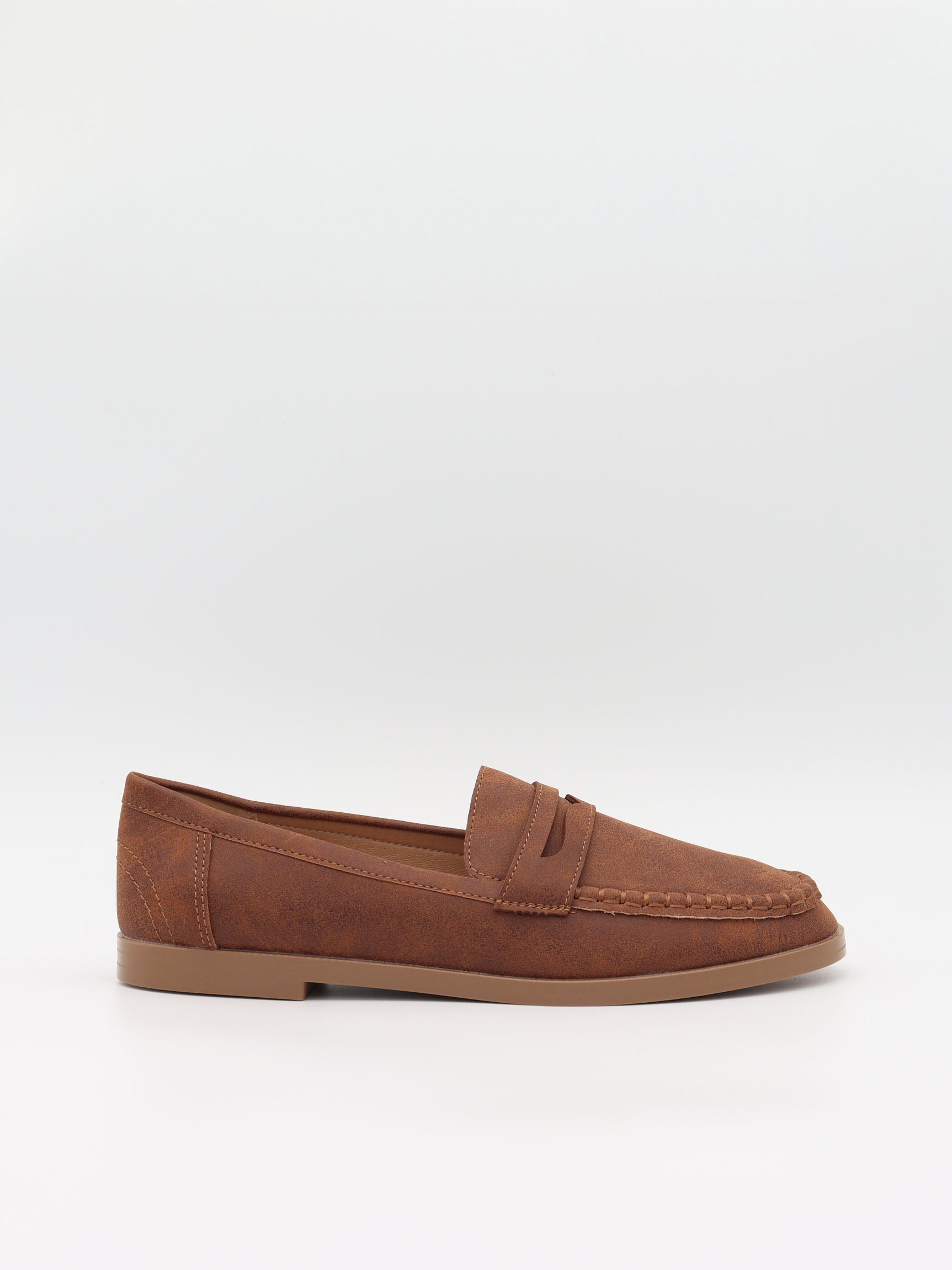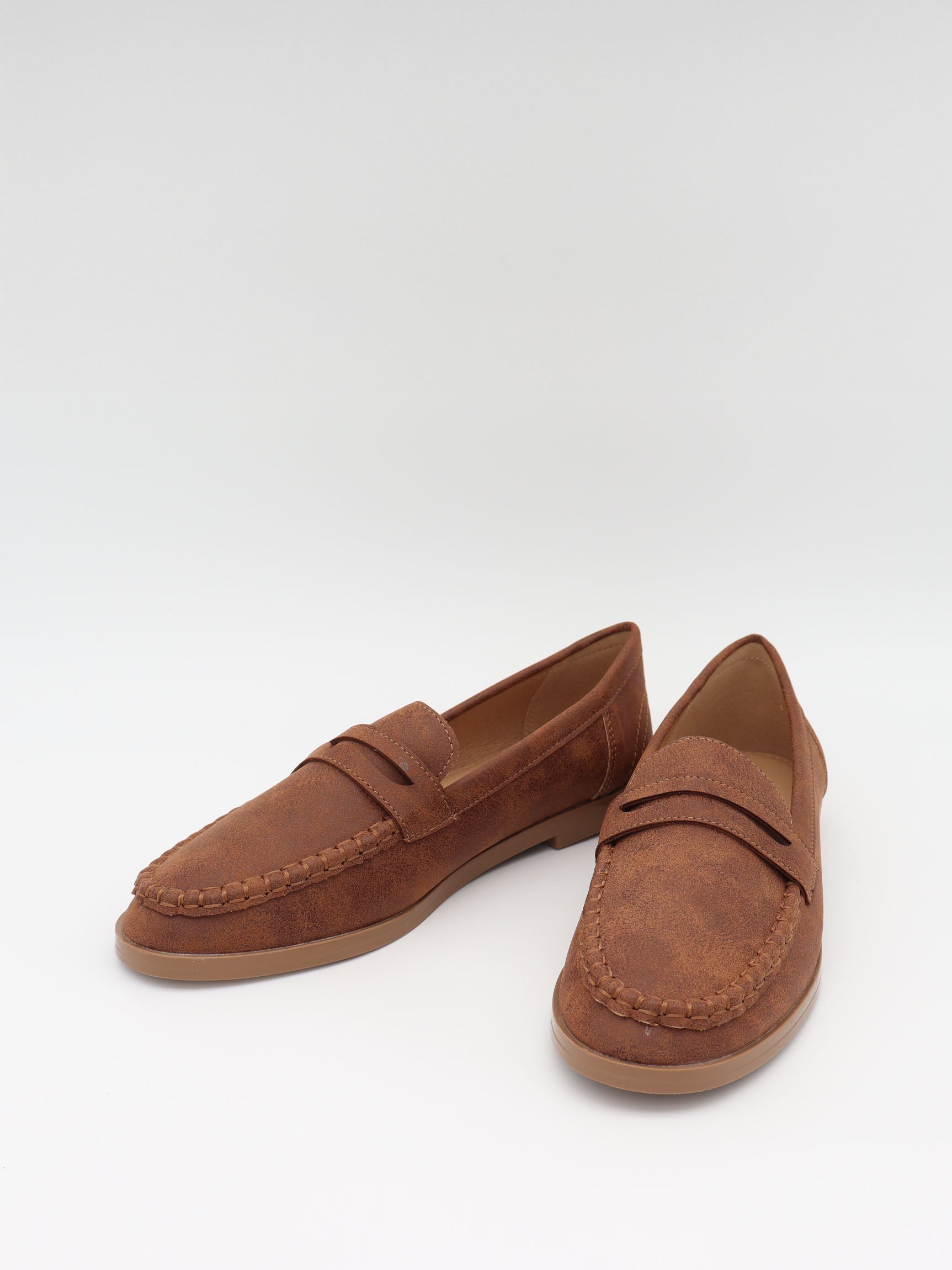 Stilfulde loafers som er perfekte til dig, der ønsker komfort og klassisk design i ét. Fremstillet i et blødt materiale med ruskindslignende finish, kombinerer skoen elegance og alsidighed. Den varme brune farve gør den nem at matche med både jeans, bukser og kjoler – uanset om det er til hverdagsbrug eller mere formelle anledninger.