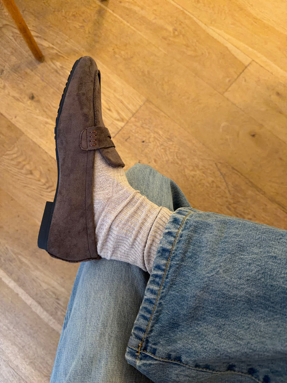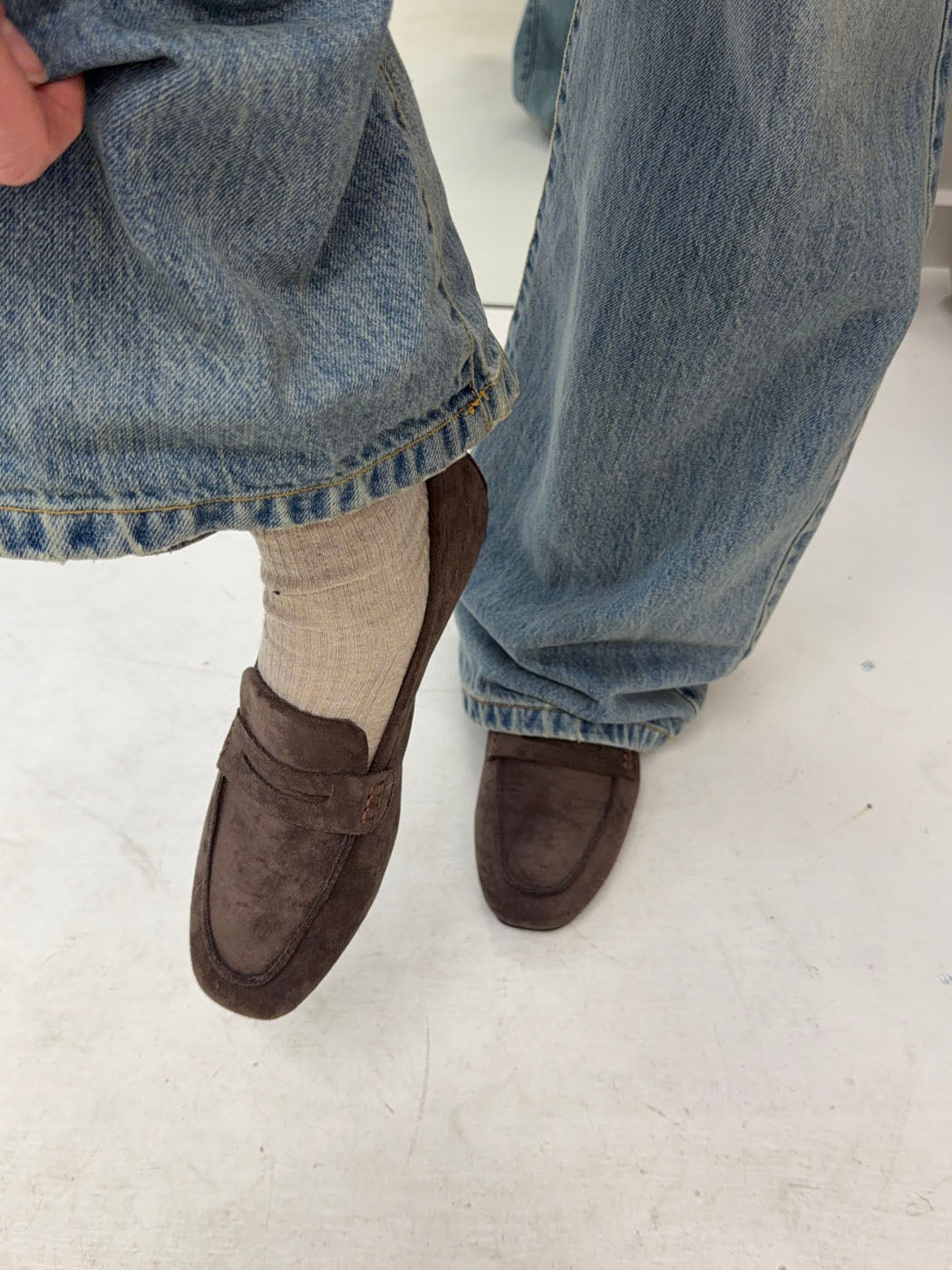 Opgrader din garderobe med disse elegante og komfortable loafers i blød, brun ruskind. Det tidløse design kombinerer klassisk stil med moderne komfort, perfekt til både hverdagsbrug og mere formelle anledninger. Penny strap-detaljen tilføjer et sofistikeret touch, mens den lette og fleksible gummisål sikrer en behagelig gang hele dagen.