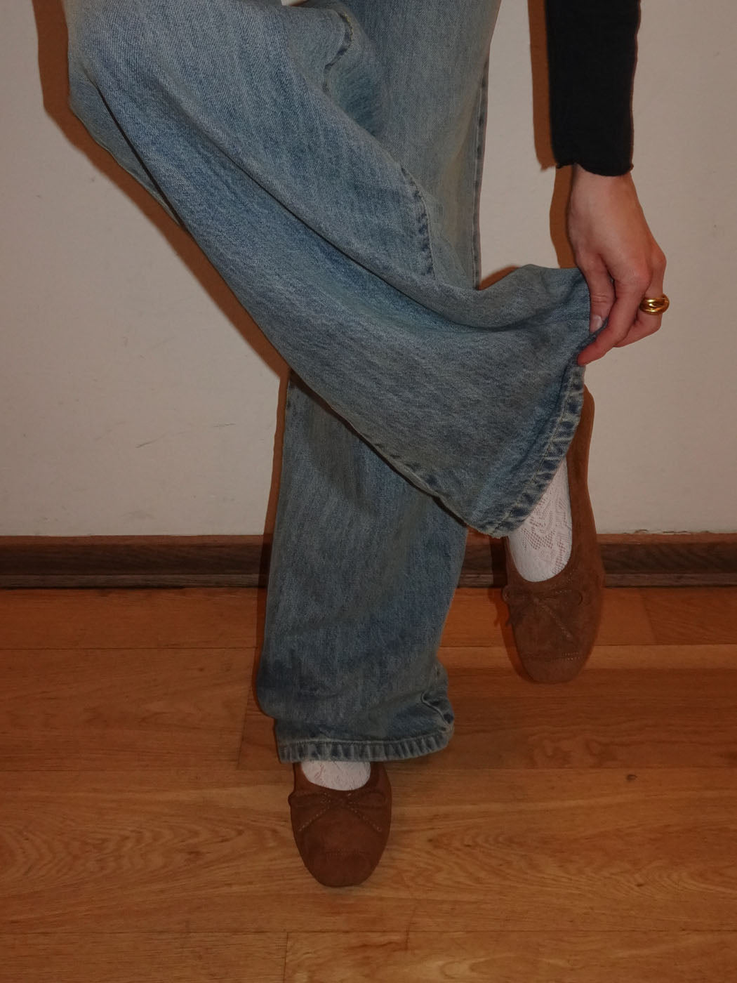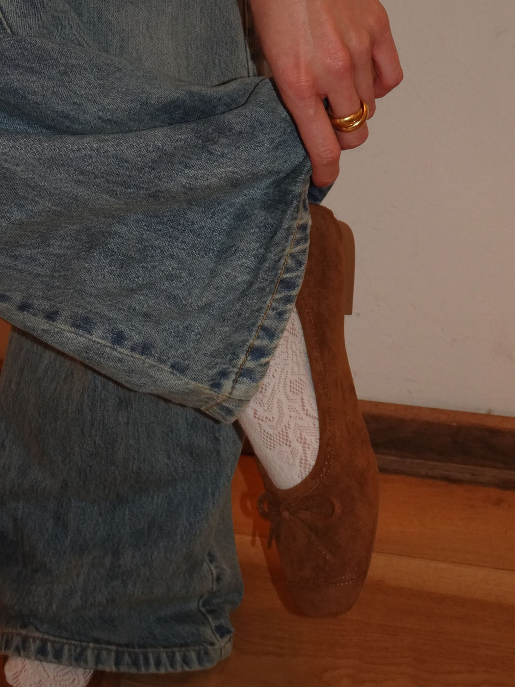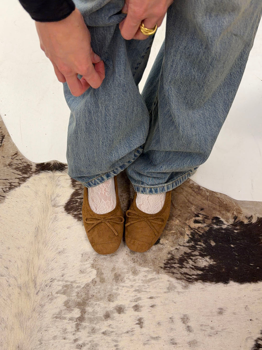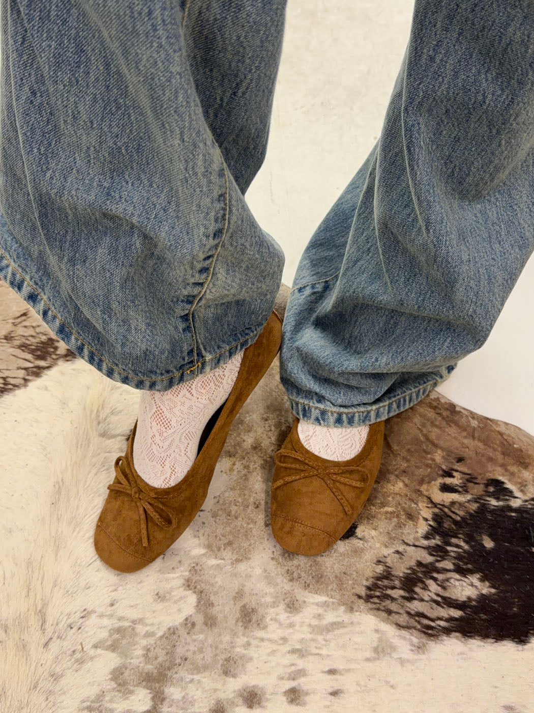 Disse klassiske ballerinaer i brunt ruskind er perfekt til et feminint hverdagslook. De går til alle slags bukser - jeans som capris - og fungerer til både hverdag og aften. Den lille sløjfe i fronten tilfører et girly touch og eleverer ballerinalooket.