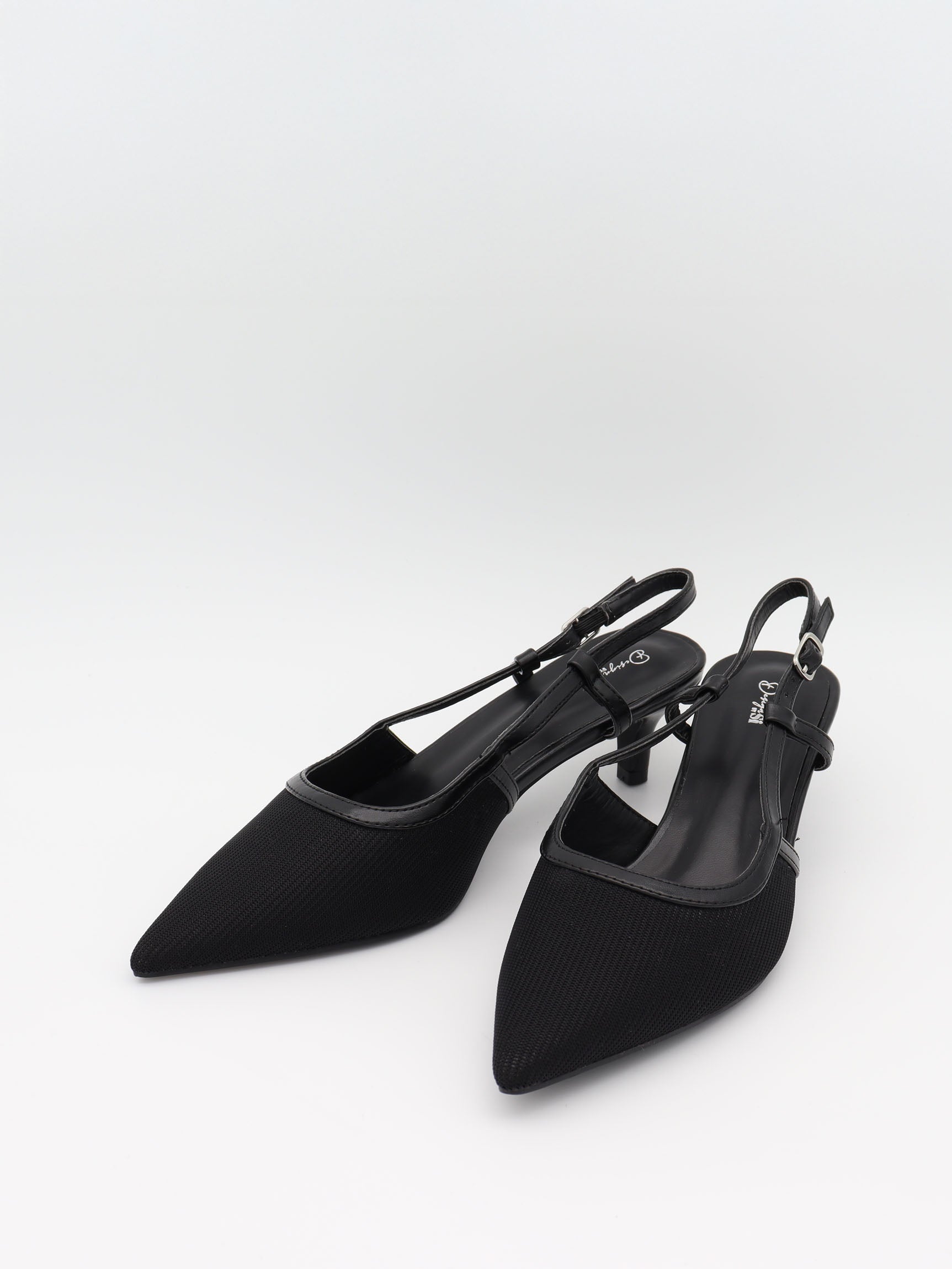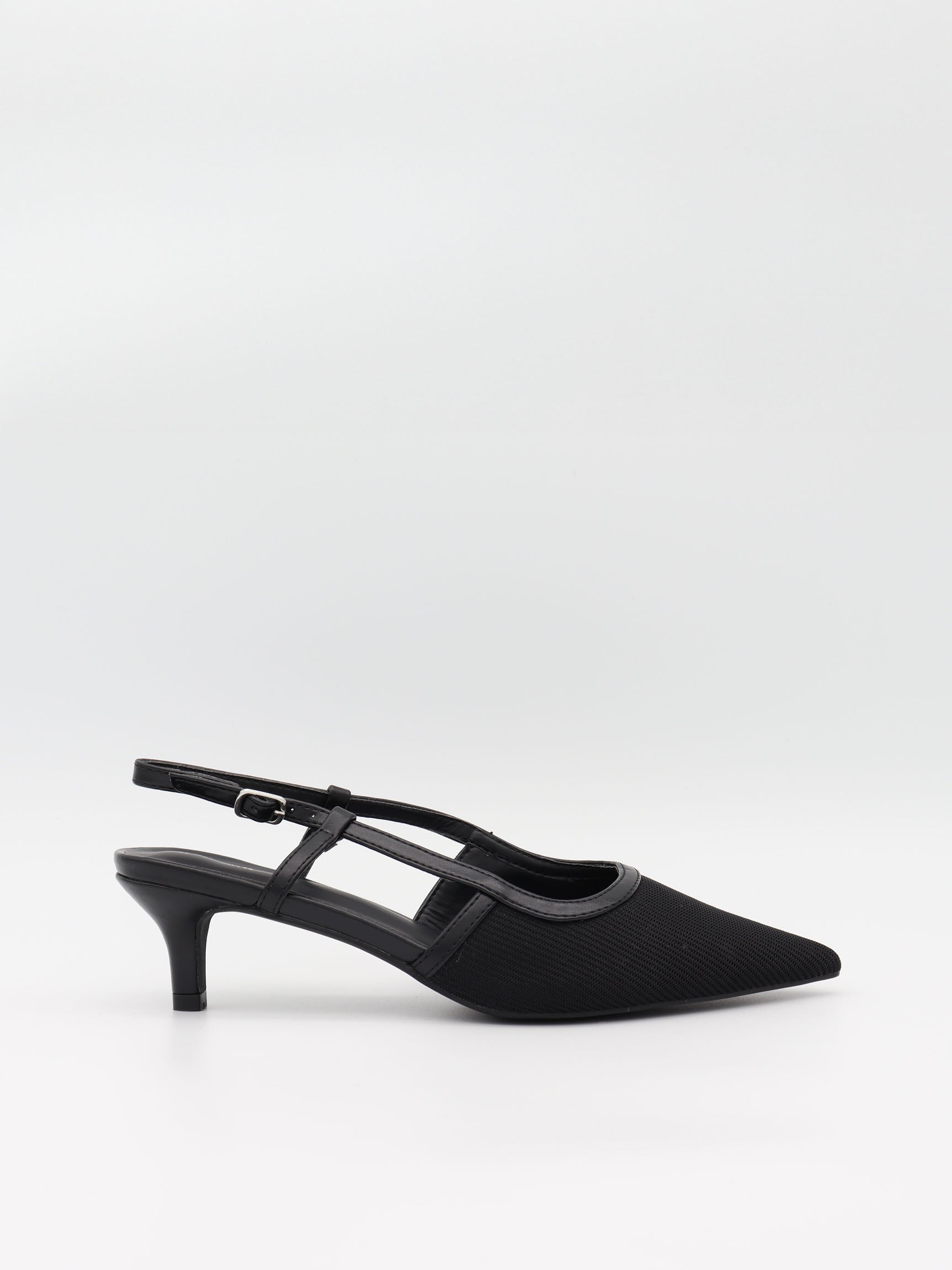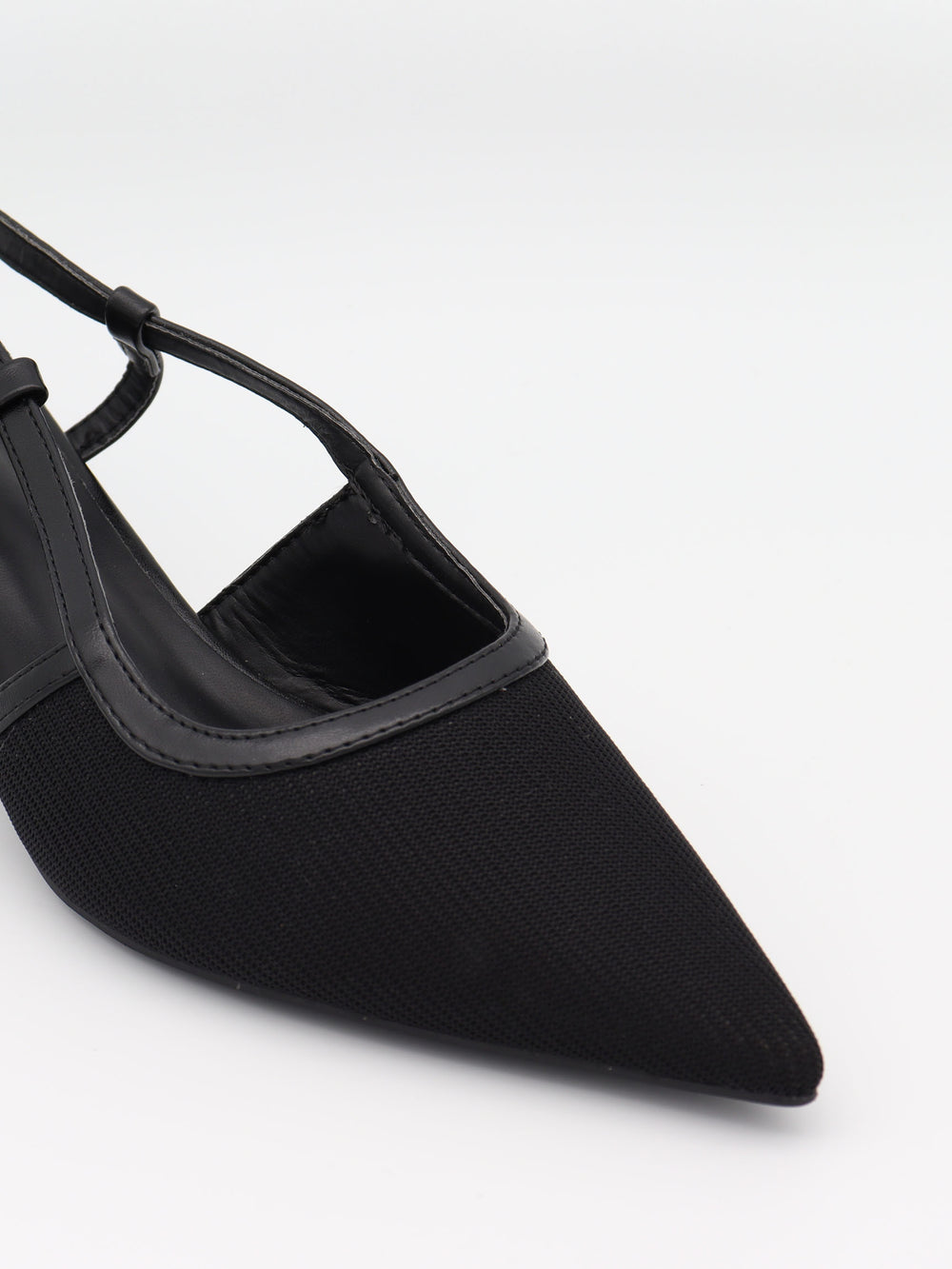 Disse elegante slingbacks kombinerer en klassisk silhuet med mesh-tekstur, som giver skoene et let og luftigt udtryk, mens de slanke remme og den spidse snude tilfører et sofistikeret og feminint look. Den smalle hæl giver højde uden at gå på kompromis med komforten, og den justerbare rem sikrer en perfekt pasform. Ideelle til både hverdagsbrug og aftenanledninger, hvor du ønsker et stilrent og elegant touch.