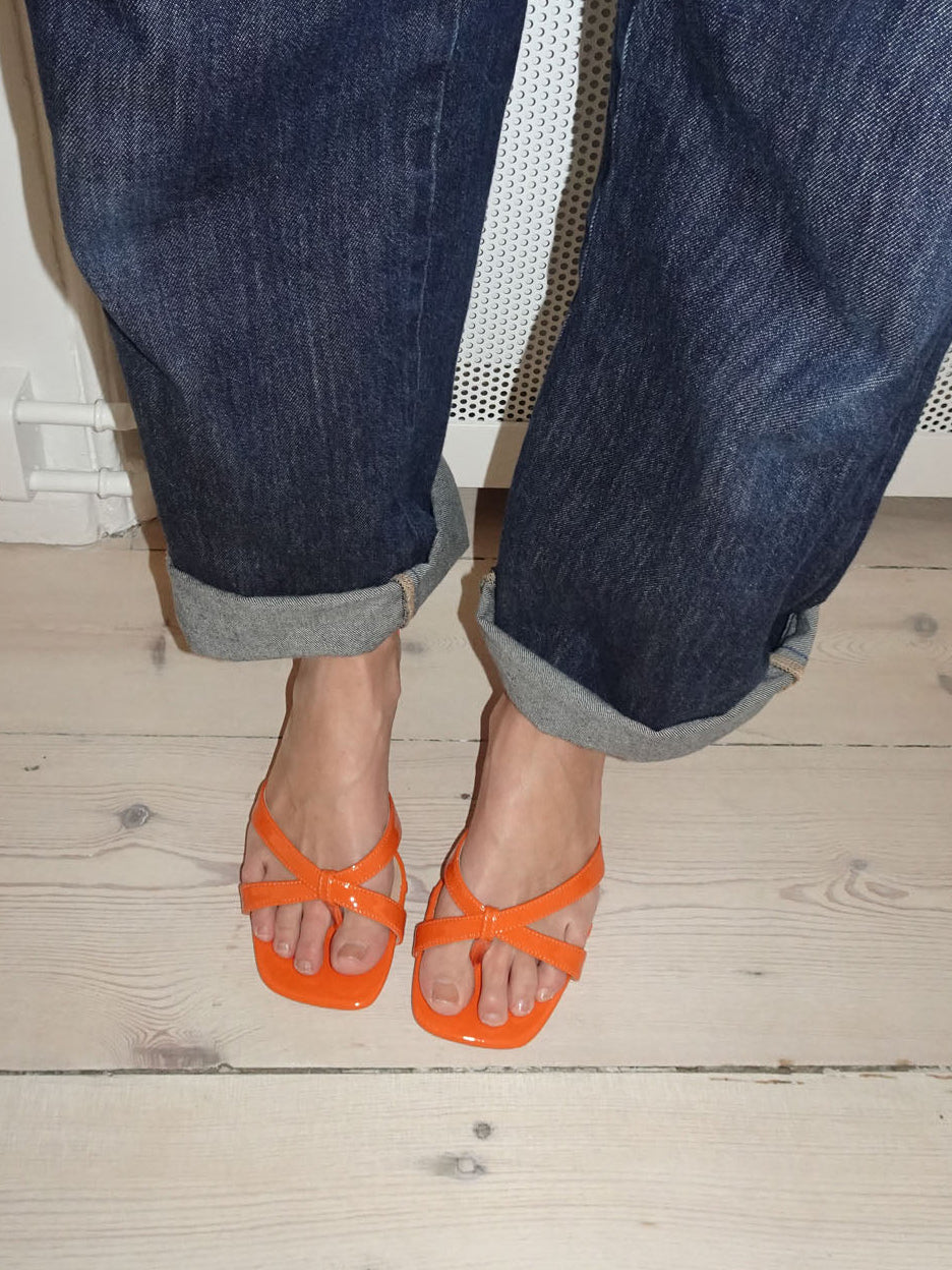 Disse elegante orange mules er et perfekt valg til dig, der ønsker en komfortabel, men elegant sko. De smukke flettede remme giver et moderne og feminint udtryk, mens den lave hæl sikrer en behagelig pasform hele dagen. Den firkantede snude tilføjer et trendy touch, og den orange farve gør dem perfekte til at tilføje et pop og color til dit outfit.