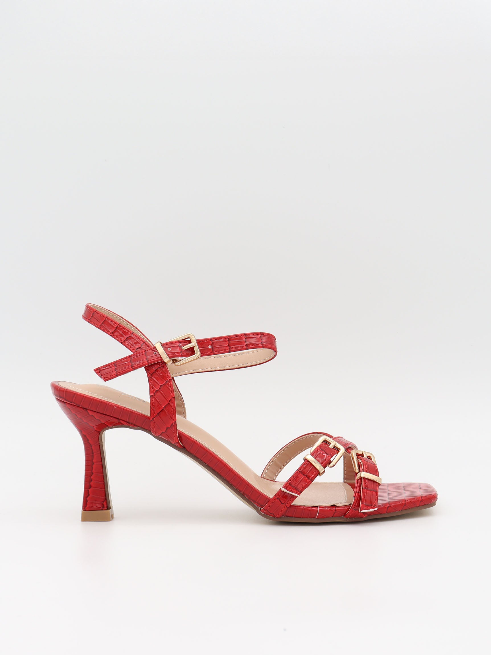 En klassisk strophæl taget til nye højder. Katianna kombinerer klassisk elegance med rå detaljer. Både krokodilleskindslooket og de mange spænder løfter skoen til nye højder og farven tilføjer et spændende touch til ethvert outfit. Perfekt til dig som ønsker en legende og anderledes sko til festen.