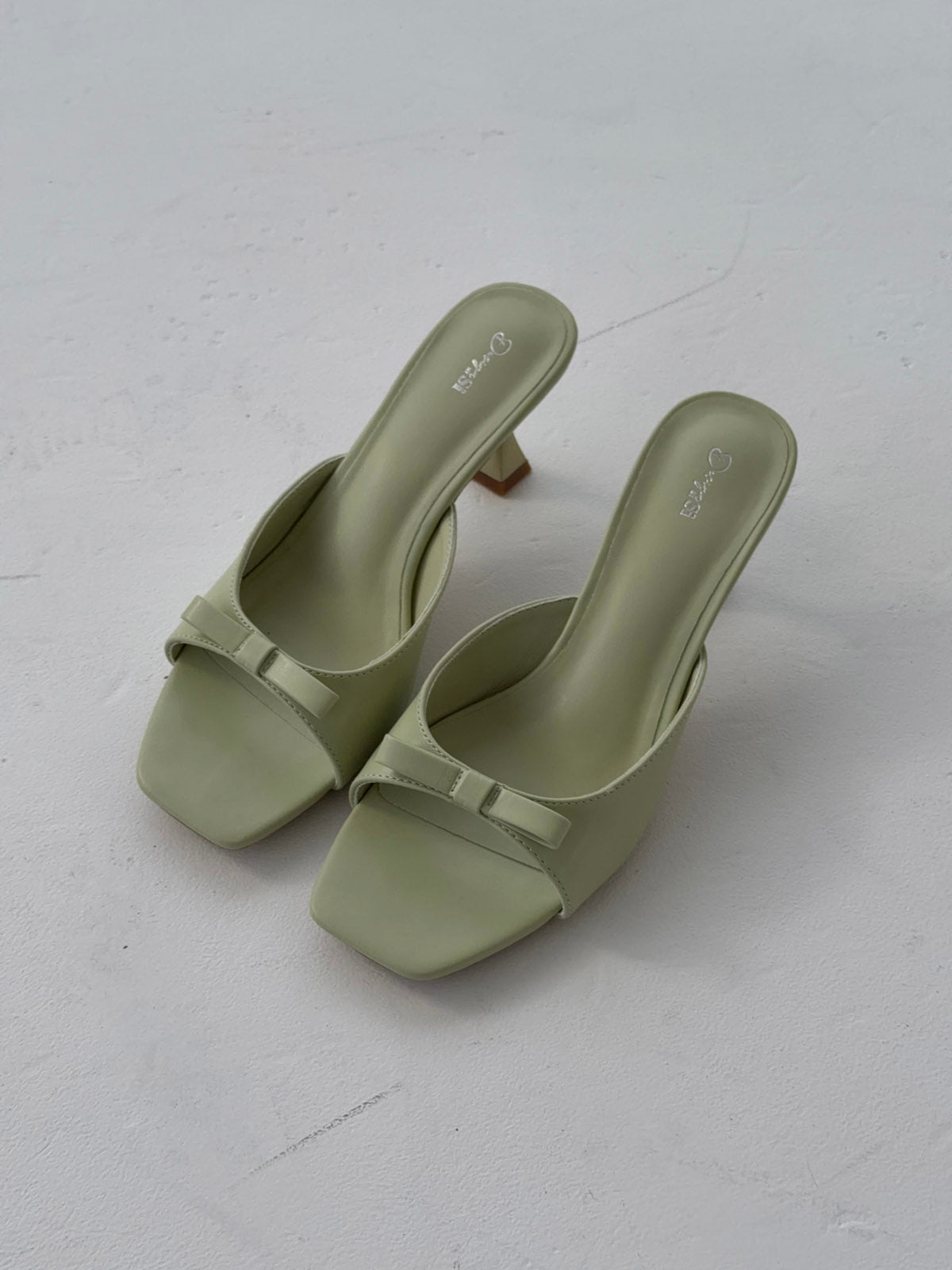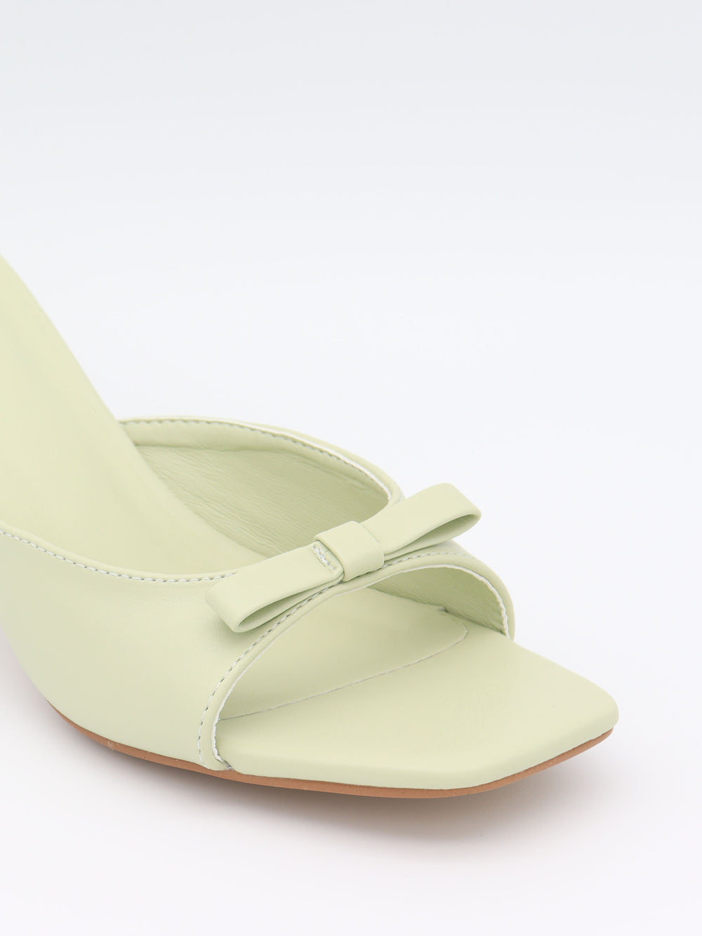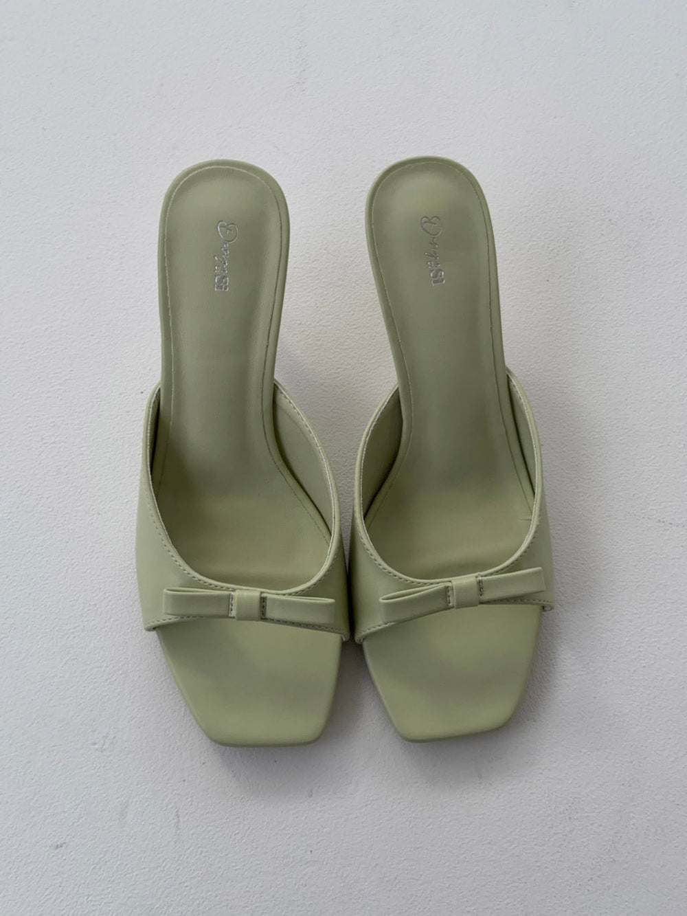 Tilføj et strejf af elegance til dit outfit med disse feminine mules i en smuk pastelgrøn nuance. Skoene har en moderne, firkantet snude og en elegant lille hæl, der giver et sofistikeret udtryk uden at gå på kompromis med komforten. Den fine sløjfedetalje foran fuldender det feminine look og gør dem perfekte til både hverdag og fest.