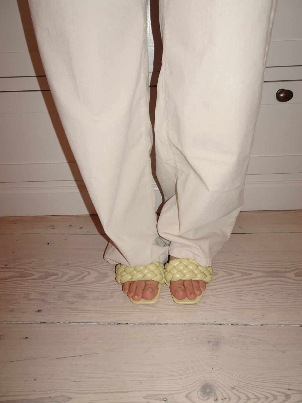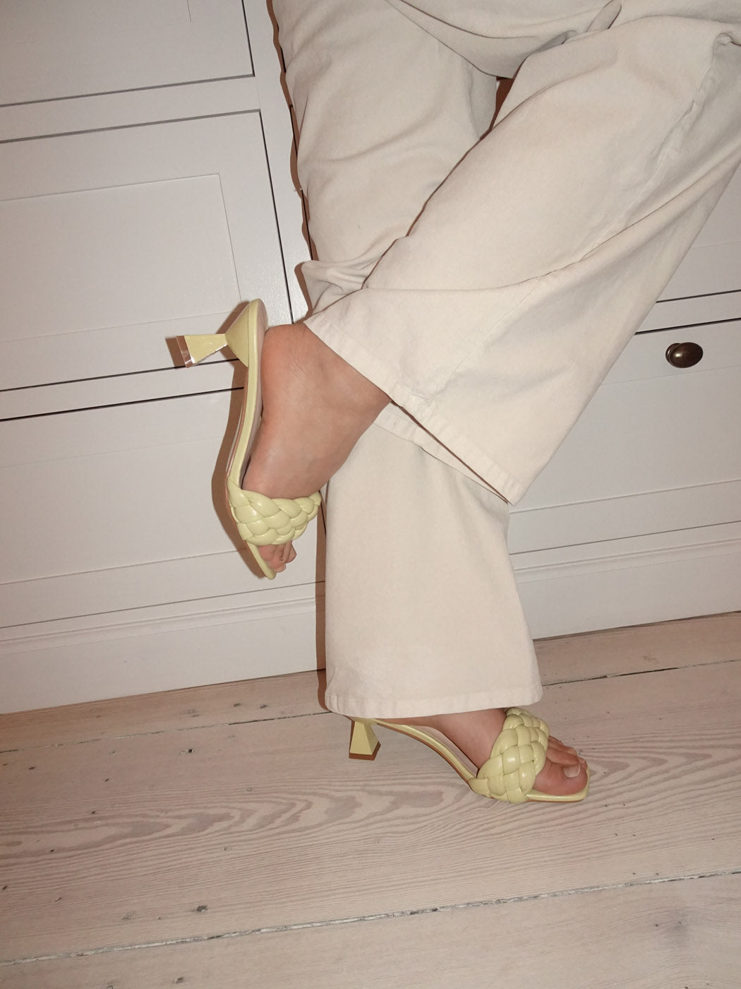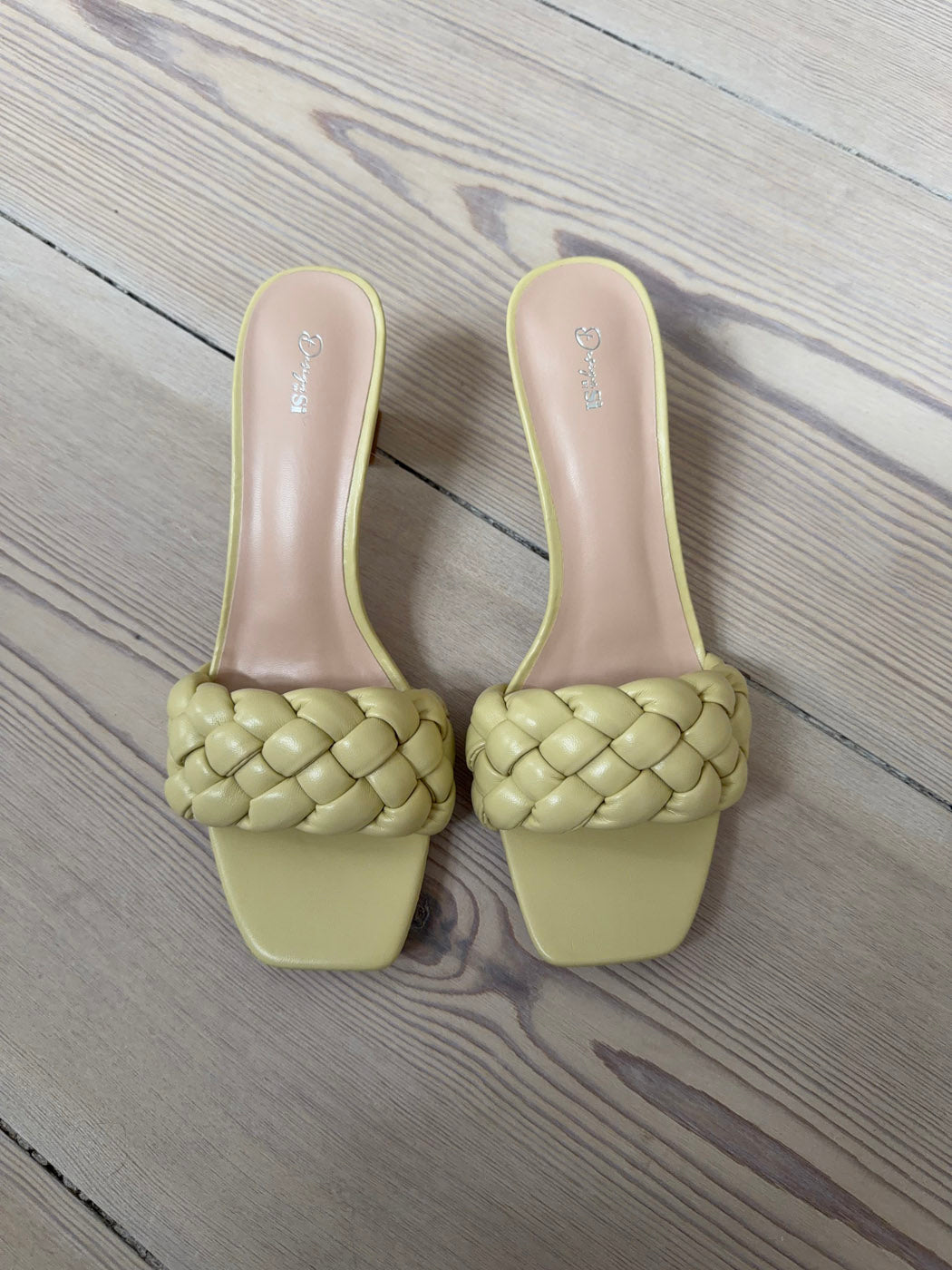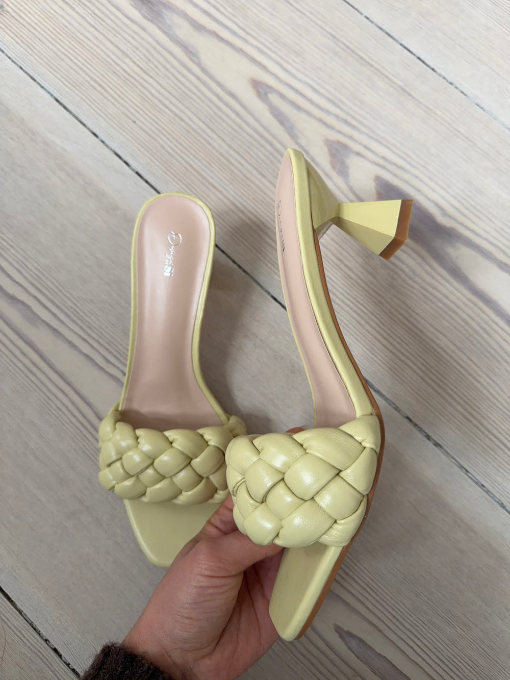 Disse mules er perfekte til dig, som ønsker et eleveret hverdagslook. Den lille unik designet hæl gør dem perfekte til et afslappet outfittet, men giver samtidig et løft. Fletdetaljen som går henover foden tilføjer et sommerligt og eksotisk touch. Kan styles med både lang og korte kjoler eller et par helt almindelige jeans.