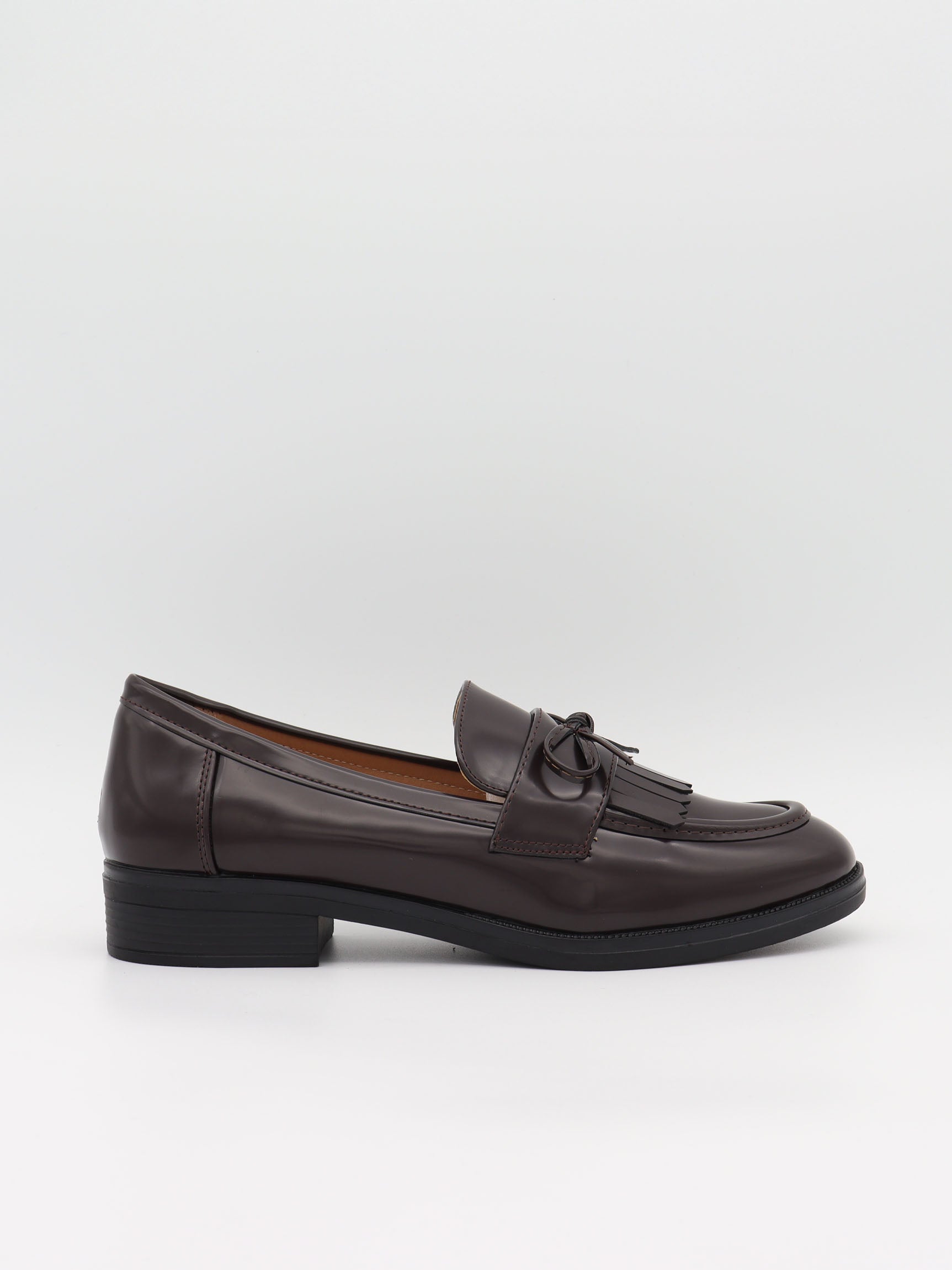 Disse brune loafers kombinerer klassisk britisk elegance med moderne finesse. Den blanke overflade og de dekorative frynser med små kvaster tilfører et eksklusivt og legende udtryk, mens den lave hæl sikrer høj komfort. Den dybe chokoladebrune nuance giver et varmt og sofistikeret look, som nemt kan styles til både kontor og hverdag. Bær dem med løse bukser eller en kjole for et poleret, men ubesværet outfit. Et stilfuldt valg, der tilføjer et luksuriøst præg til enhver garderobe.