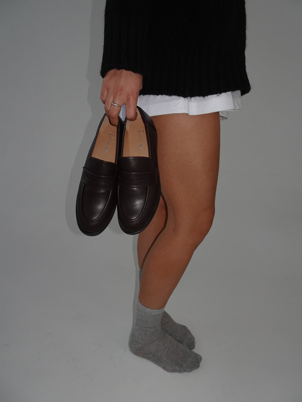 Disse klassiske loafers i brun forener tidløs elegance med moderne enkelhed. Den glatte overflade og de raffinerede syninger giver skoen et sofistikeret udtryk, mens den lave hæl sikrer komfort hele dagen. Den karakteristiske remdetalje over vristen tilfører et diskret, stilfuldt præg, der gør loafersene perfekte både til hverdag og mere formelle lejligheder. Bær dem med skræddersyede bukser for et poleret kontorlook, eller style dem med en kjole for et elegant, men afslappet udtryk. Et uundværligt par i garderoben, der kombinerer komfort, kvalitet og klassisk design.
