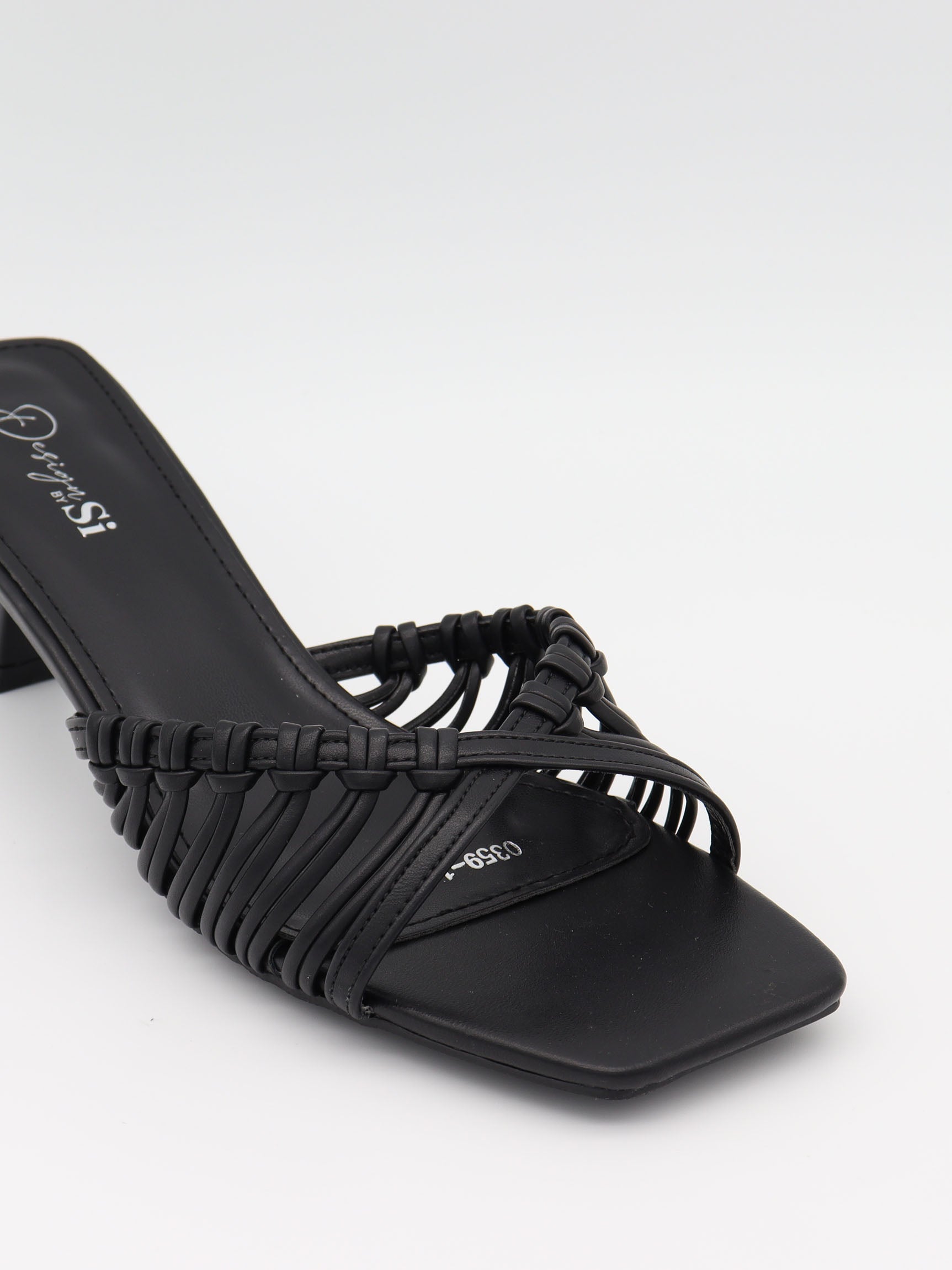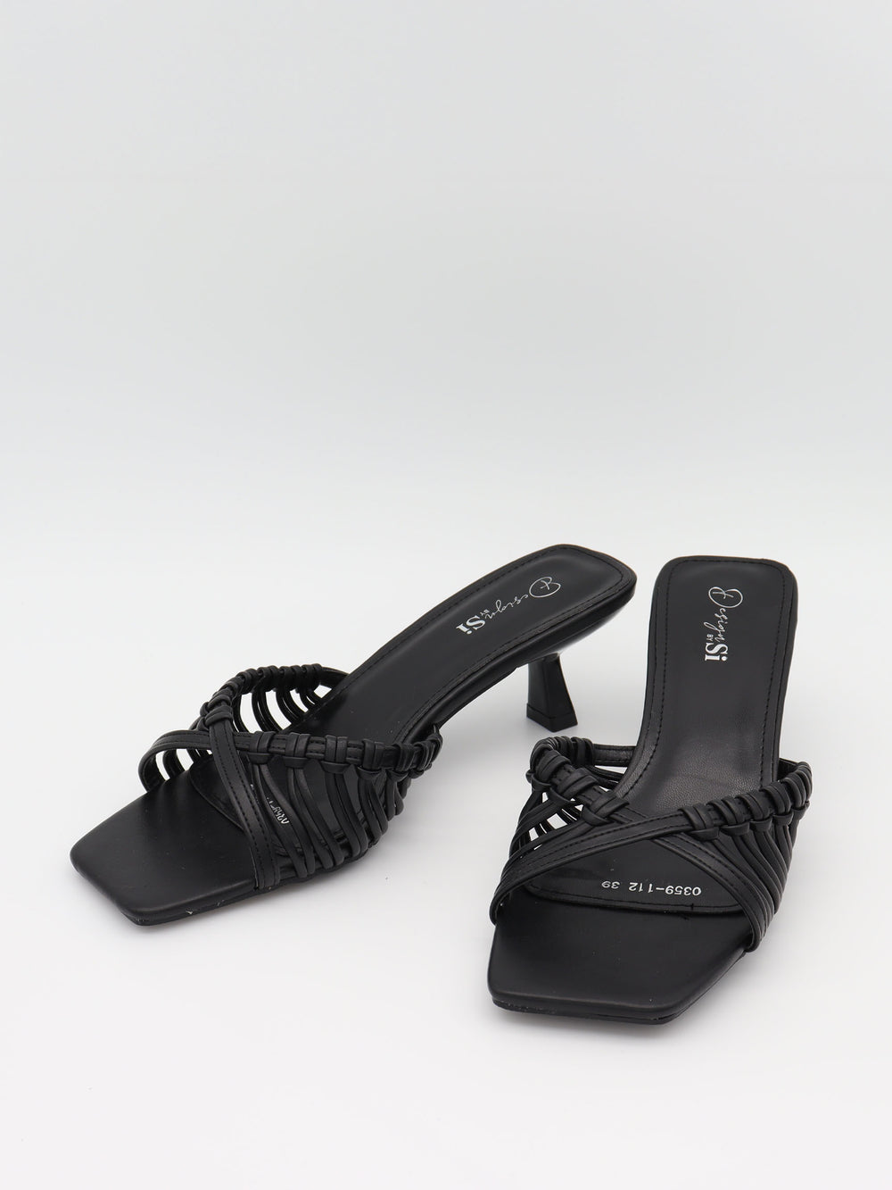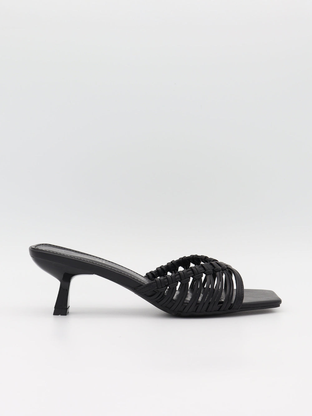 Disse elegante mules kombinerer feminine detaljer med et moderne udtryk. De flettede remme skaber et unikt og raffineret look, mens den firkantede snude giver et trendy touch. Den smalle hæl tilfører højde uden at gå på kompromis med komforten, og den sorte finish gør sandalerne nemme at style til både hverdags- og aftenoutfits. Et stilfuldt valg til sommerens fester, middage og særlige anledninger.