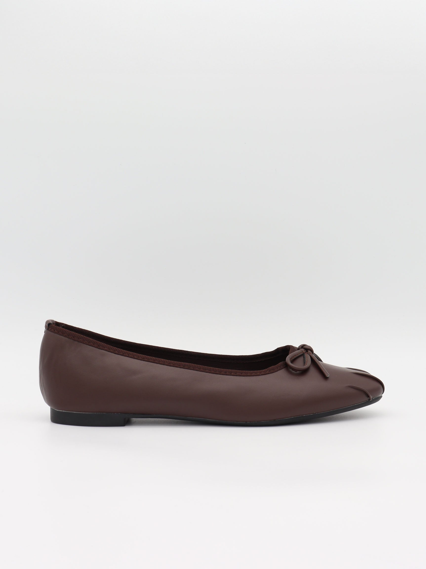 Disse klassiske ballerinaer kombinerer enkel elegance med et moderne twist. Den bløde, brune overflade giver et tidløst og stilrent udtryk, mens de fine syninger foran tilfører et unikt og karakterfuldt look. Sløjfen øverst tilføjer et feminint touch, og den lave hæl gør skoene behagelige til hele dagen. Perfekte til både hverdagsbrug og mere polerede outfits, hvor du ønsker komfort uden at gå på kompromis med stil.