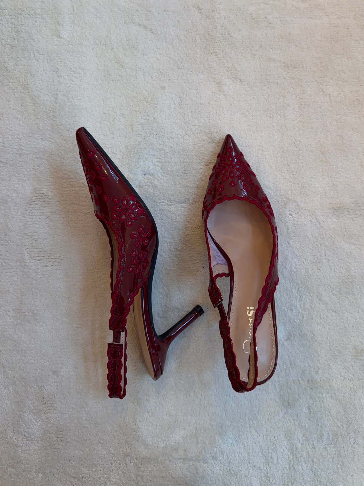 Disse elegante slingbacks skiller sig ud med deres smukke udskæringsdetaljer og blanke finish. Det feminine mønster giver et delikat og luksuriøst udtryk, mens de bølgede kanter tilfører skoene et eksklusivt touch. Den spidse snude og slanke hæl skaber en sofistikeret silhuet, perfekt til både festlige lejligheder og aftenlooks, hvor du ønsker elegance med kant. En stilfuld hæl, der kombinerer detaljerig design med komfort og finesse.
